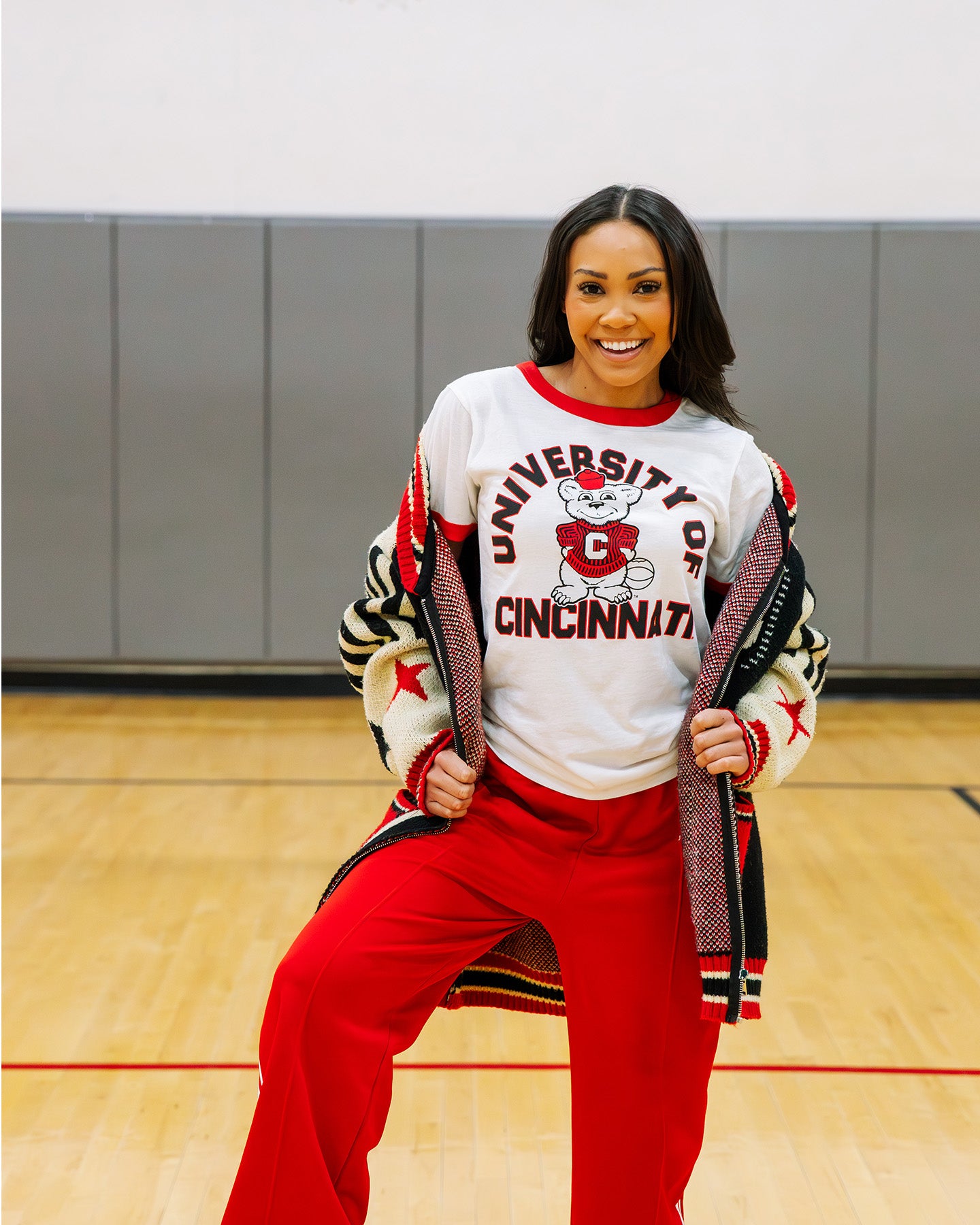 Show your Bearcat pride with this University of Cincinnati Basketball Ringer T-Shirt, featuring a retro-inspired Bearcat graphic and classic ringer styling. Designed with a crisp white body, contrasting red collar and sleeve trim, and a vintage Cincinnati basketball mascot graphic, this tee delivers timeless collegiate style. Made from soft, comfortable fabric, it’s perfect for game days, campus wear, or everyday casual outfits, making it a must-have for University of Cincinnati fans, students, and alumni who appreciate classic throwback apparel.