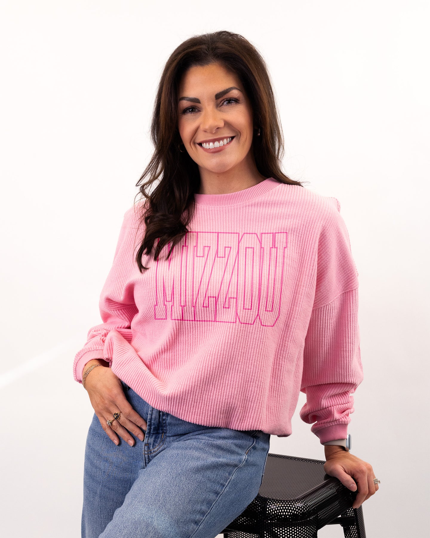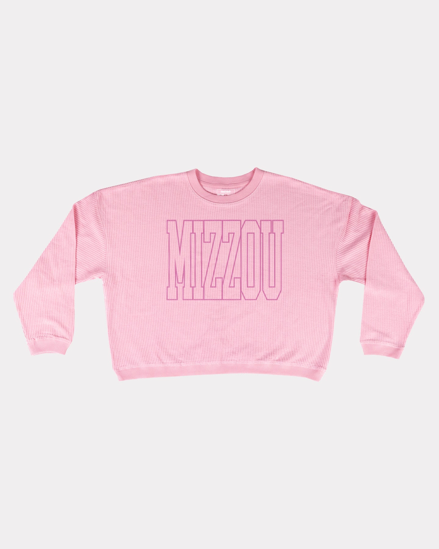 Elevate your everyday look with the Women’s Mizzou Pink Corded Crew. This crew combines comfort with a timeless, vintage-inspired vibe. The subtle pink “MU” graphic adds a refined touch that pairs effortlessly with jeans, leggings, or joggers. Perfect for layering on Game Day, this crew is a versatile staple for any local fan.