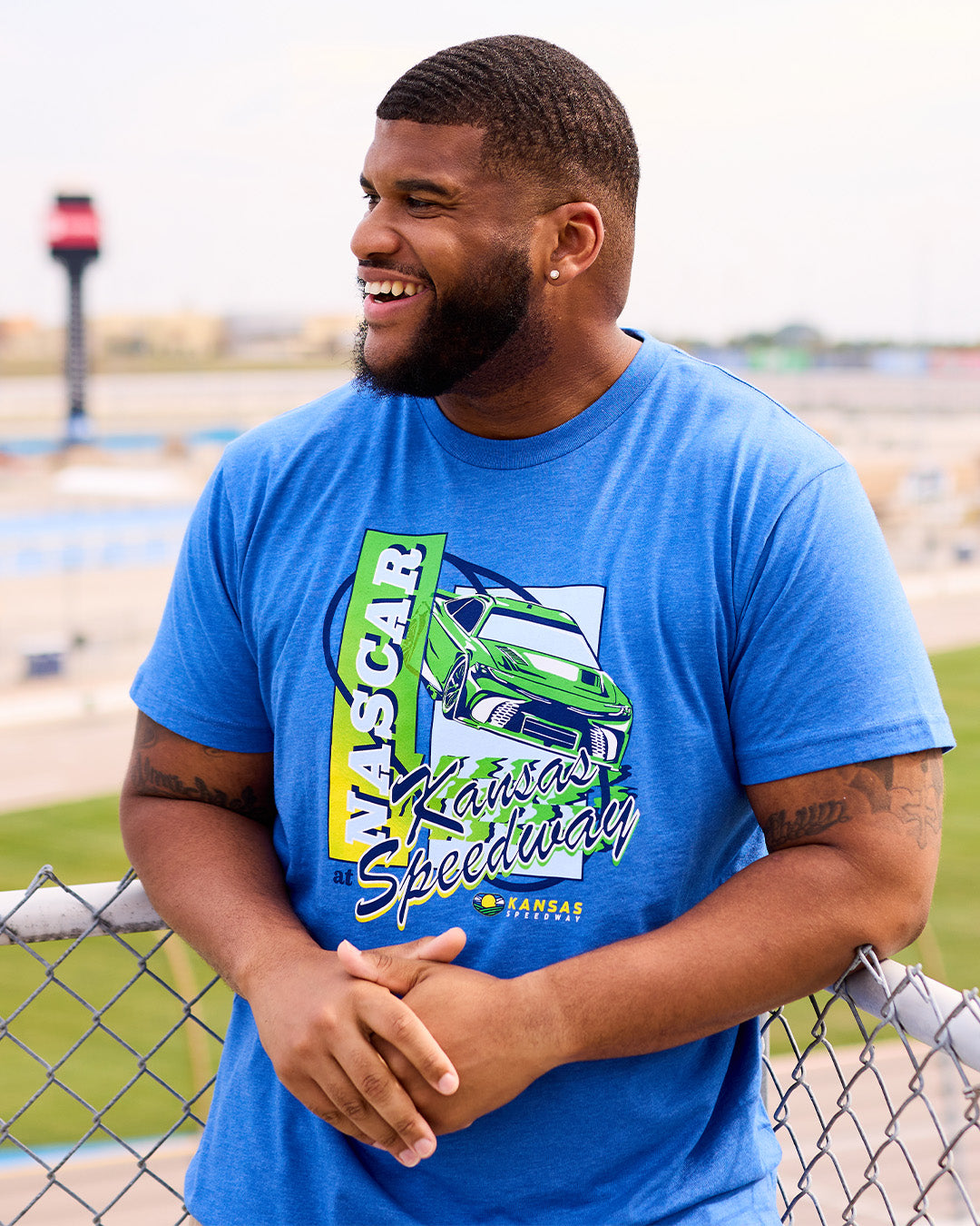 Get race-day ready with this bold NASCAR Kansas Speedway T-Shirt. Featuring a high-energy design with a speeding stock car and colorful Kansas Speedway graphics, this royal blue tee is perfect for fans who live for the thrill of the track. Whether you’re cheering from the grandstands or repping your NASCAR pride around town, this tee is a must-have for any Kansas Speedway fan looking to showcase their love for racing in style.