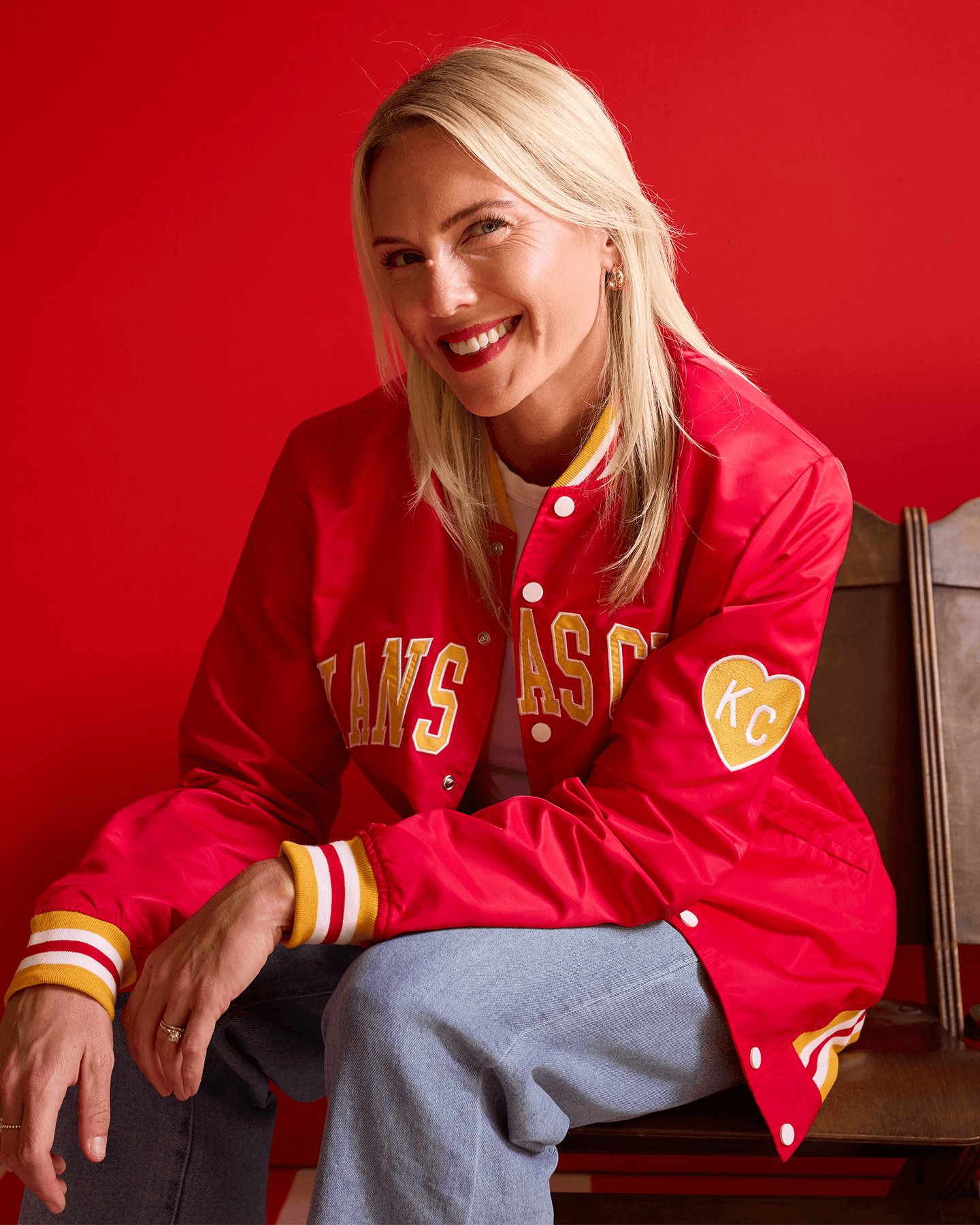 Show love for your hometown with this one-of-a-kind Kansas City Script Letterman Jacket. This vintage-inspired Kansas City jacket is made of 100% polyester with tackle twill stitched lettering and features the iconic KC Heart logo on the left sleeve. The perfect jacket for cheering on the boys in Red & Gold at any tailgate or watch party!