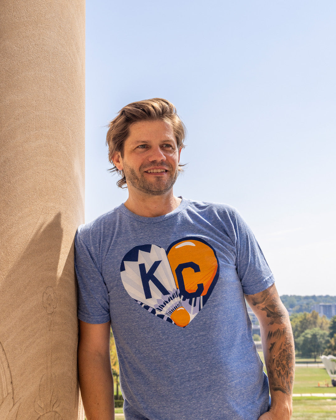 Celebrate art, culture, and community with the Shuttlecock Heart Vintage Blue T-Shirt. Featuring a bold heart graphic that blends the iconic shuttlecock from the Nelson-Atkins Museum with a modern athletic vibe, this design captures hometown pride in a fresh and creative way. Printed on a soft vintage blue tee, it’s perfect for everyday wear—whether you’re exploring the city, visiting the museum, or cheering on your favorite local events.