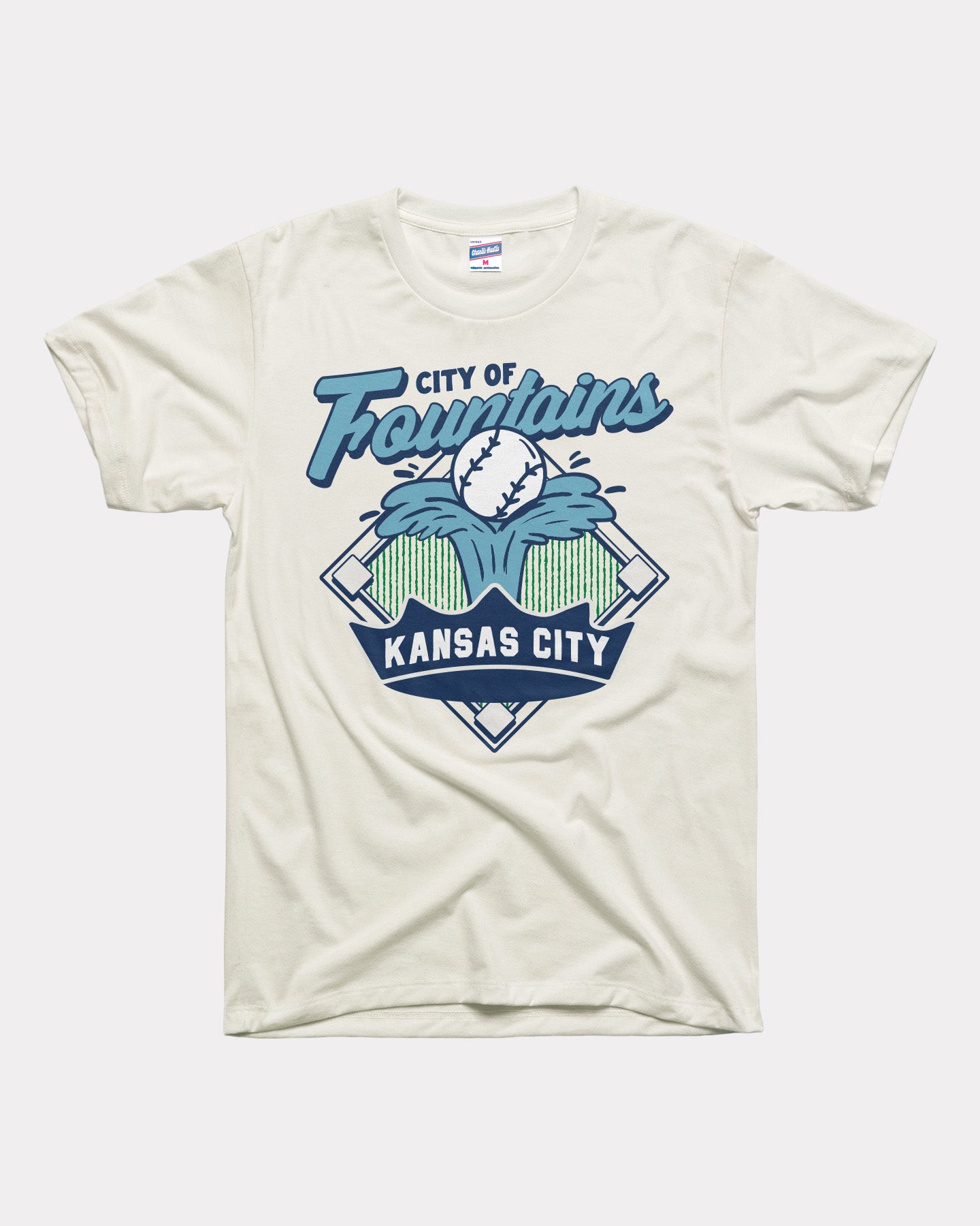 Featuring a bold, vintage-inspired graphic that blends a baseball diamond, flowing fountain imagery, and classic lettering, this design pays homage to the City of Fountains and the heart of Crown Town pride.