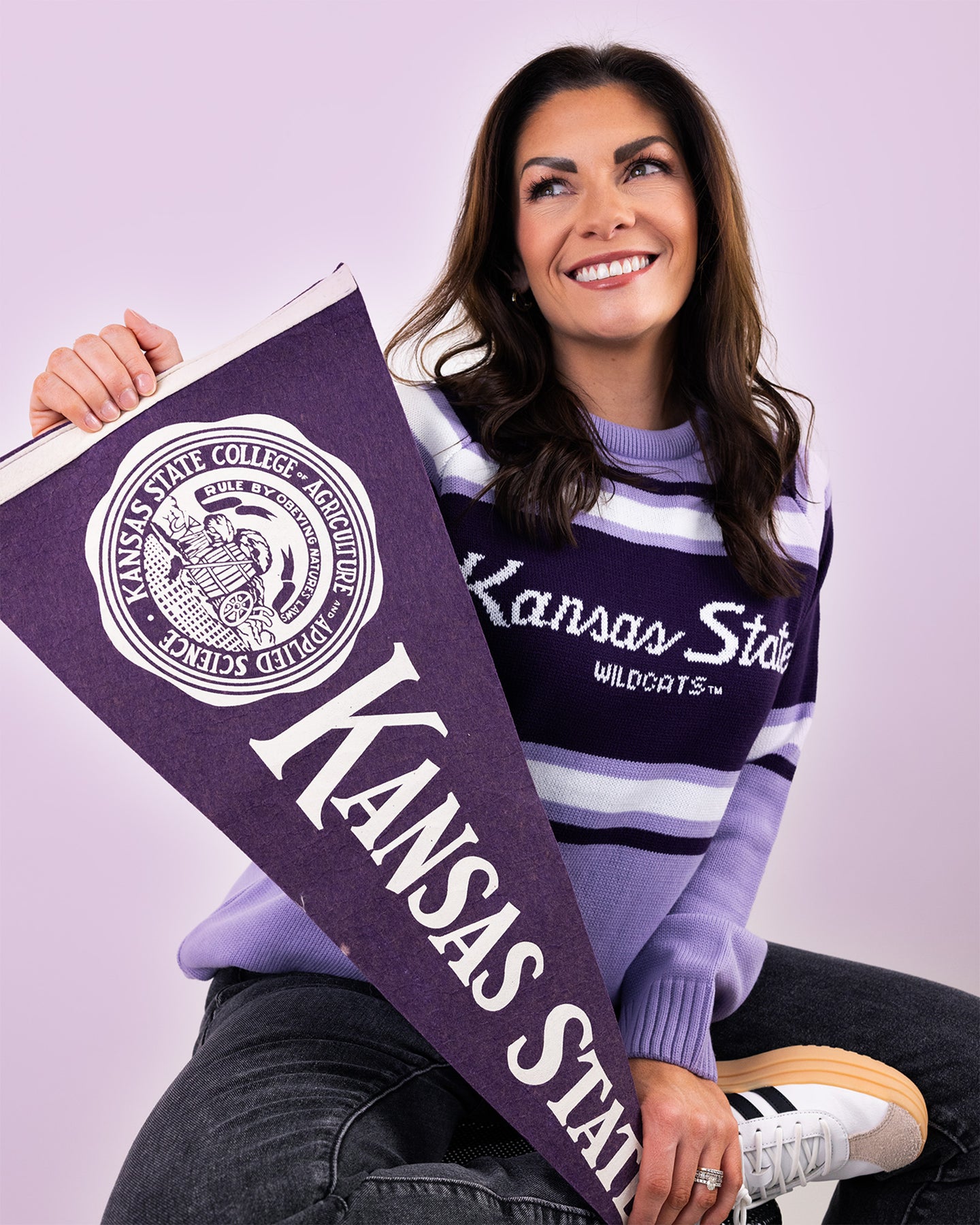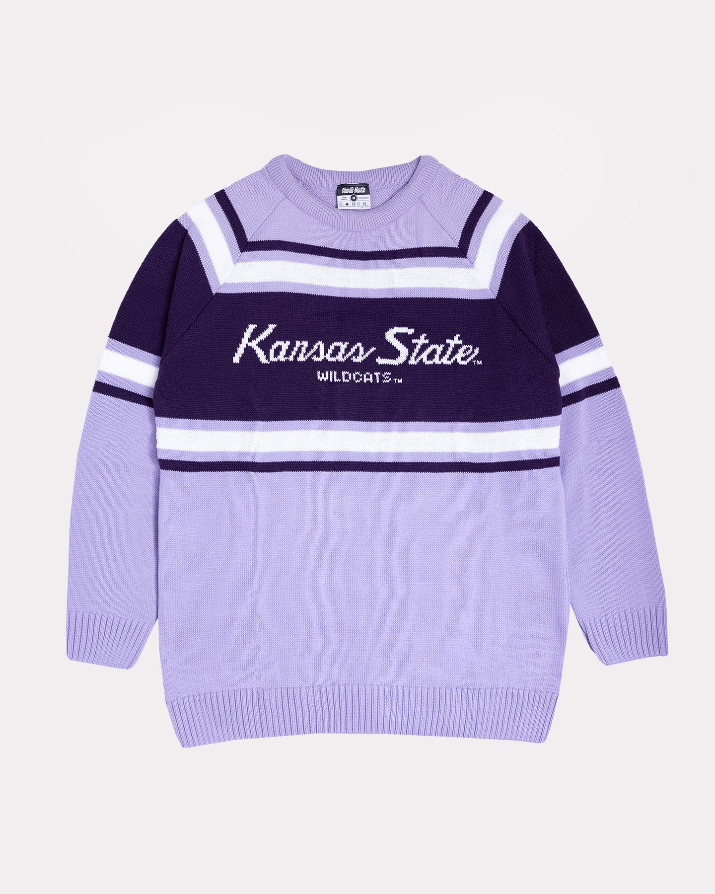 Show your Wildcat pride in standout style with the K-State Lavender Sweater. Featuring bold “Kansas State Wildcats” script across a deep purple chest stripe, this vintage-inspired crewneck brings classic collegiate energy with a modern twist. The soft lavender body and contrasting stripes make it a fresh take on K-State tradition - perfect for game days, campus life, or cozy everyday wear.