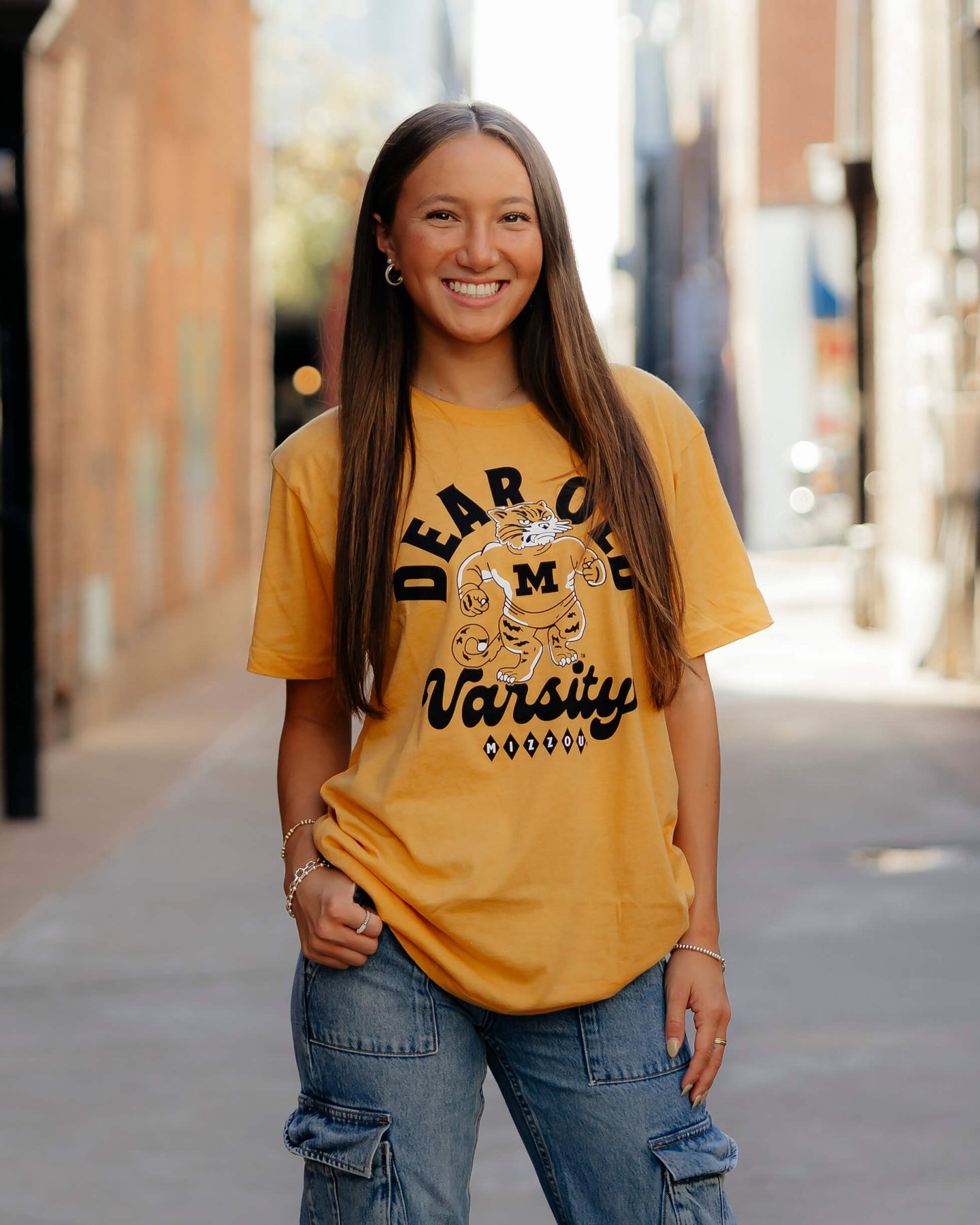 The words "Old Missouri, fair Missouri, Dear old varsity, Ours are hearts that fondly love thee, Here's a health to thee" form the first verse of the Missouri Fight Song and are deeply ingrained into the hearts of Mizzou students and fans everywhere. Show off your Mizzou roots with this classic MU tee! Officially licensed College Vault product.
