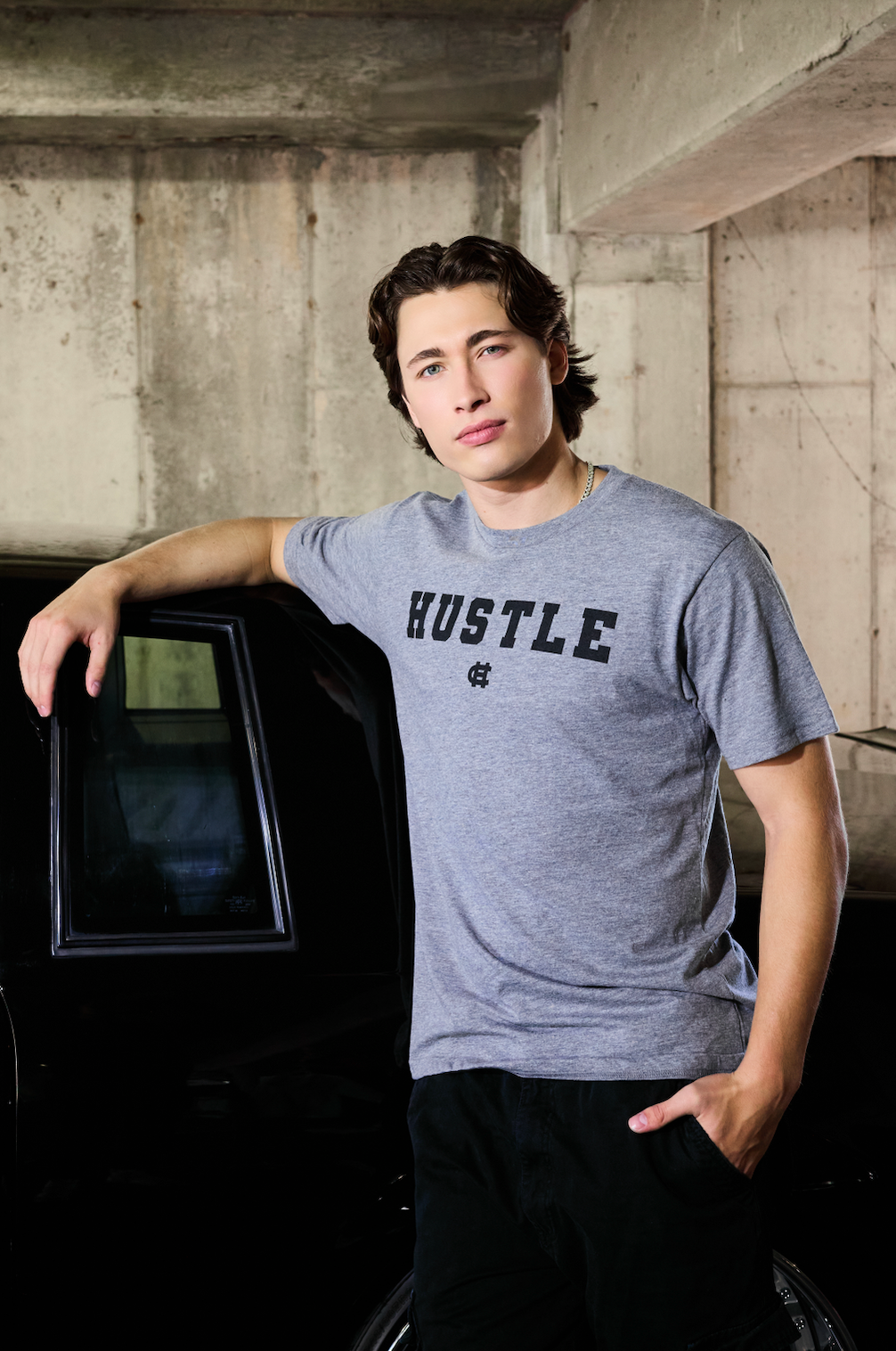 Keep your look sharp with the Hustle CH Monogram Grey T-Shirt. Designed with bold black “HUSTLE” lettering and a signature monogram detail, this heather grey tee is the perfect balance of style and comfort. Its timeless design makes it easy to wear for everyday outings, workouts, or laid-back weekends.