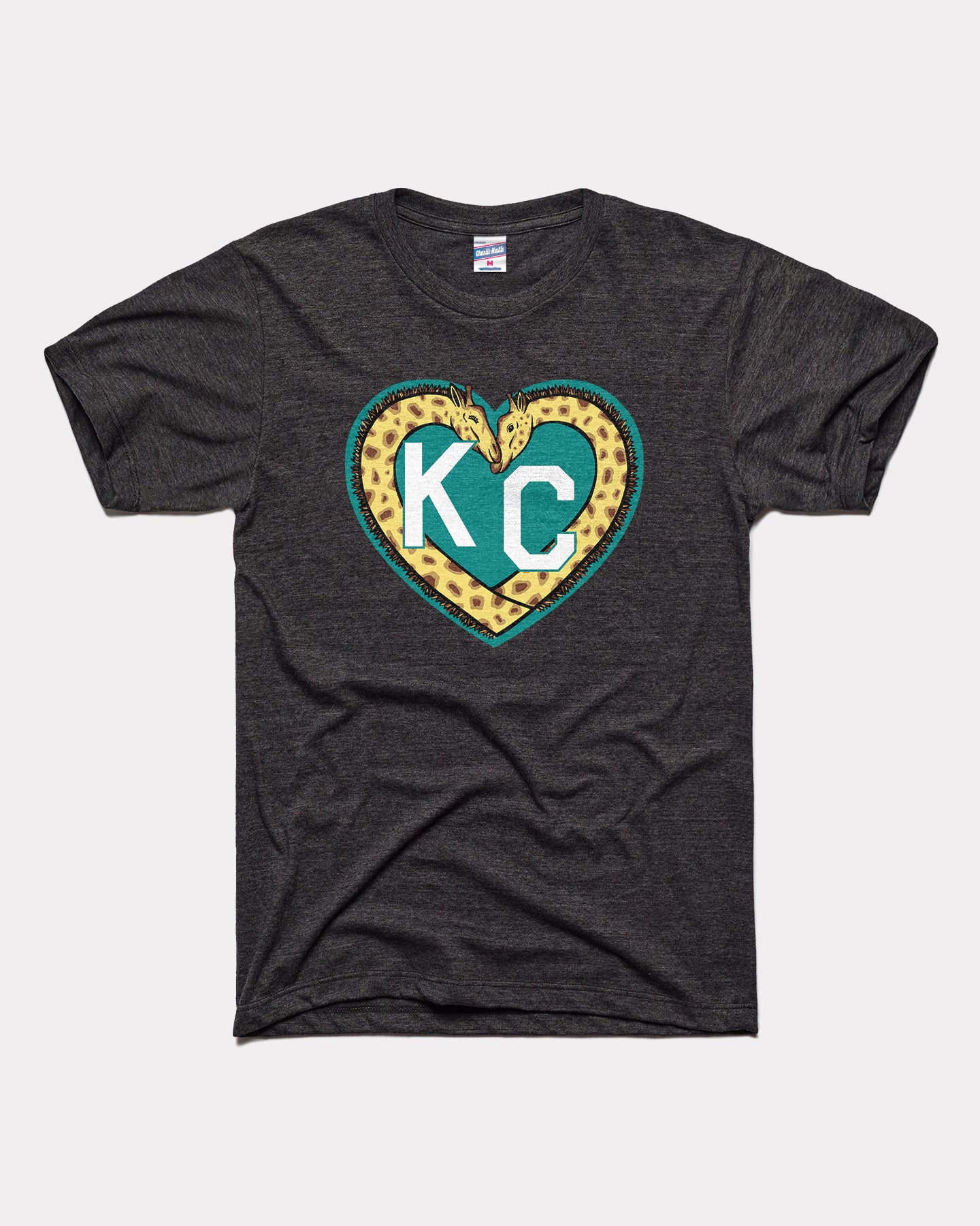Stand tall for your city and its tallest residents with the KC Zoo Giraffe Heart T-Shirt. This wild take on our iconic KC Heart features two giraffes forming a heart, all in honor of the Kansas City Zoo & Aquarium’s beloved giraffe exhibit. With a cozy fit and a heart full of hometown pride, this tee is perfect for animal lovers and KC adventurers alike. A portion of proceeds helps support the Kansas City Zoo & Aquarium – so you can wear your heart on your tee and give back while you’re at it!
