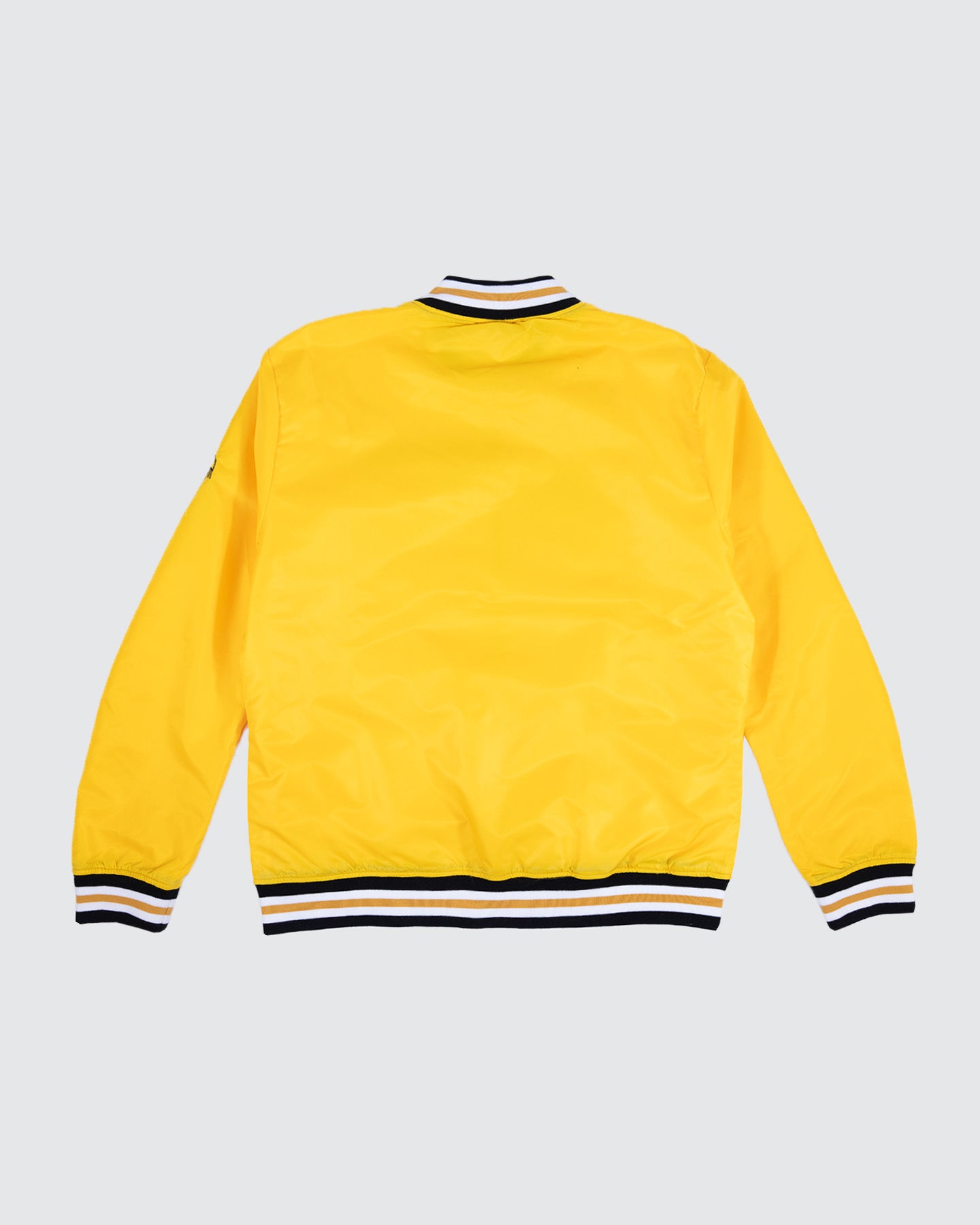 Bring the energy of Shocker Nation to life with the Wichita State College Vault Shockers Script Yellow Varsity Jacket. This bold, vintage-inspired piece features “Shockers” in classic script across the chest and the retro WuShock mascot on the sleeve — a true nod to WSU heritage. The golden yellow body paired with black and white striped ribbing delivers that perfect old-school varsity vibe. Whether you’re cheering courtside or strolling campus, this jacket celebrates Wichita State pride with timeless style.