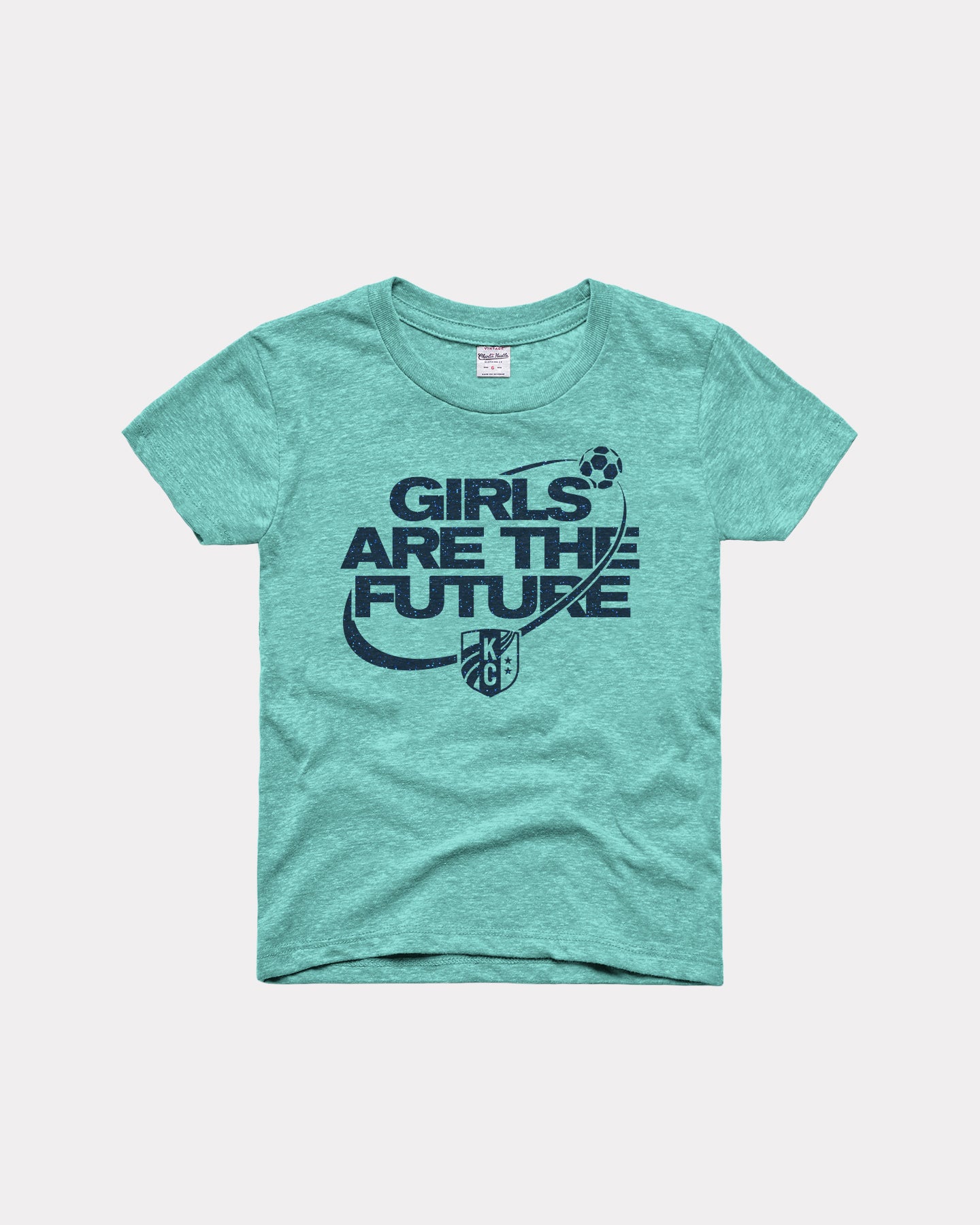 Empower young fans with the Kids Girls Are the Future KC Current T-Shirt, an officially licensed design that celebrates both pride and progress. Featuring bold navy lettering with a glitter overlay, a soccer ball graphic and the KC Current crest, this bright teal tee inspires confidence while repping Kansas City’s premier women’s soccer team. Made from a soft, durable cotton blend, it’s perfect for school, game days at CPKC Stadium, or everyday adventures. A meaningful and stylish way for the next generation to show their love for KC Current and women’s sports.