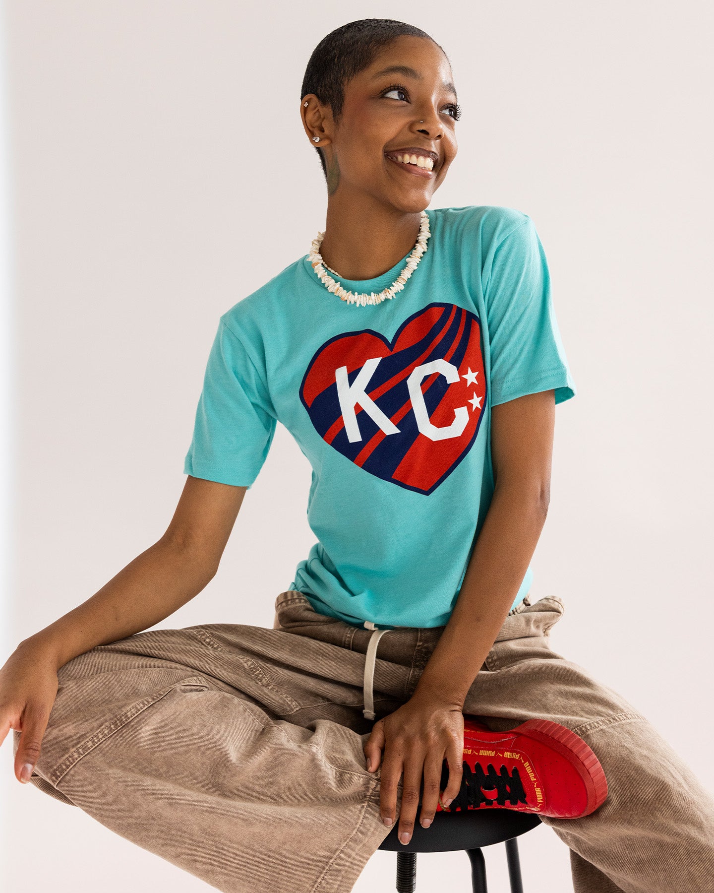 Show some love for the Kansas City Current with this super-soft Teal & Red KC Heart T-Shirt, featuring the KC Current crest. This officially licensed tee is perfect for rooting on the Current on match day and beyond. Get in on the buzz today!
