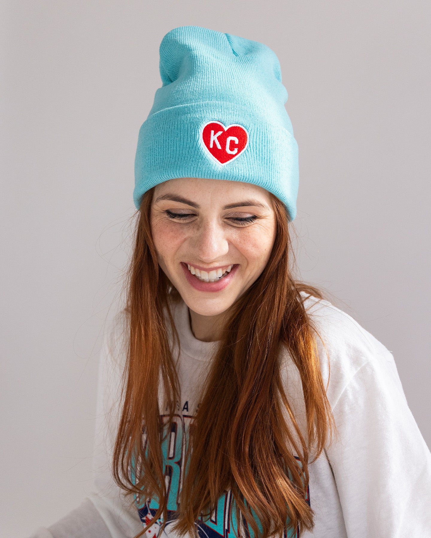 Keep your Kansas City spirit cozy with the KC Heart Teal Classic Cuff Beanie. This vibrant teal beanie features our signature red KC Heart logo front and center. Designed for warmth and everyday wear, it’s perfect for game days at the stadium, winter walks, or showing hometown pride all season long.