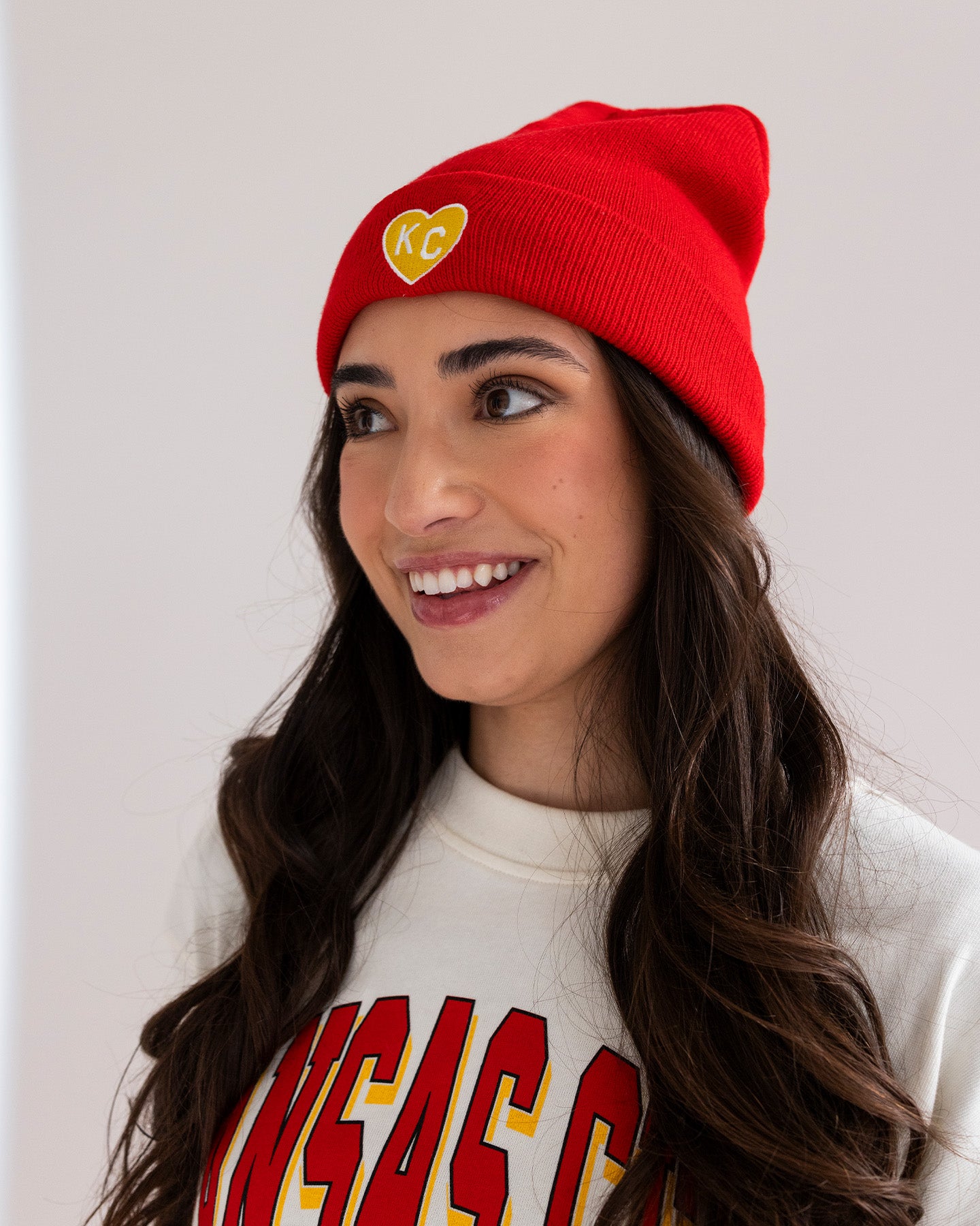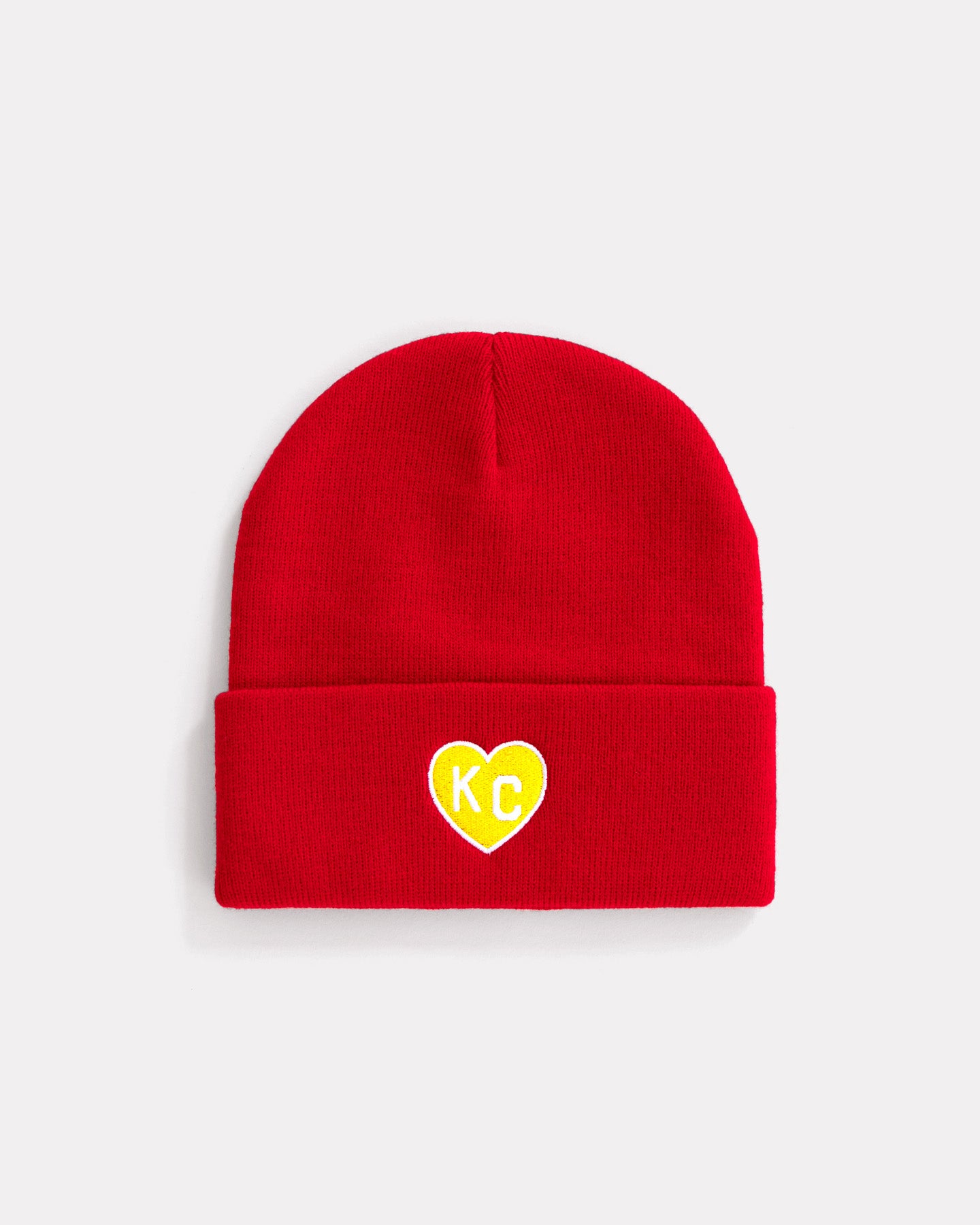 Keep your ears warm and show love for your favorite city all winter long with this Red and Yellow KC Heart Beanie. This ultra-soft beanie is made of 100% Knit Acrylic and will quickly become your go-to accessory this winter!