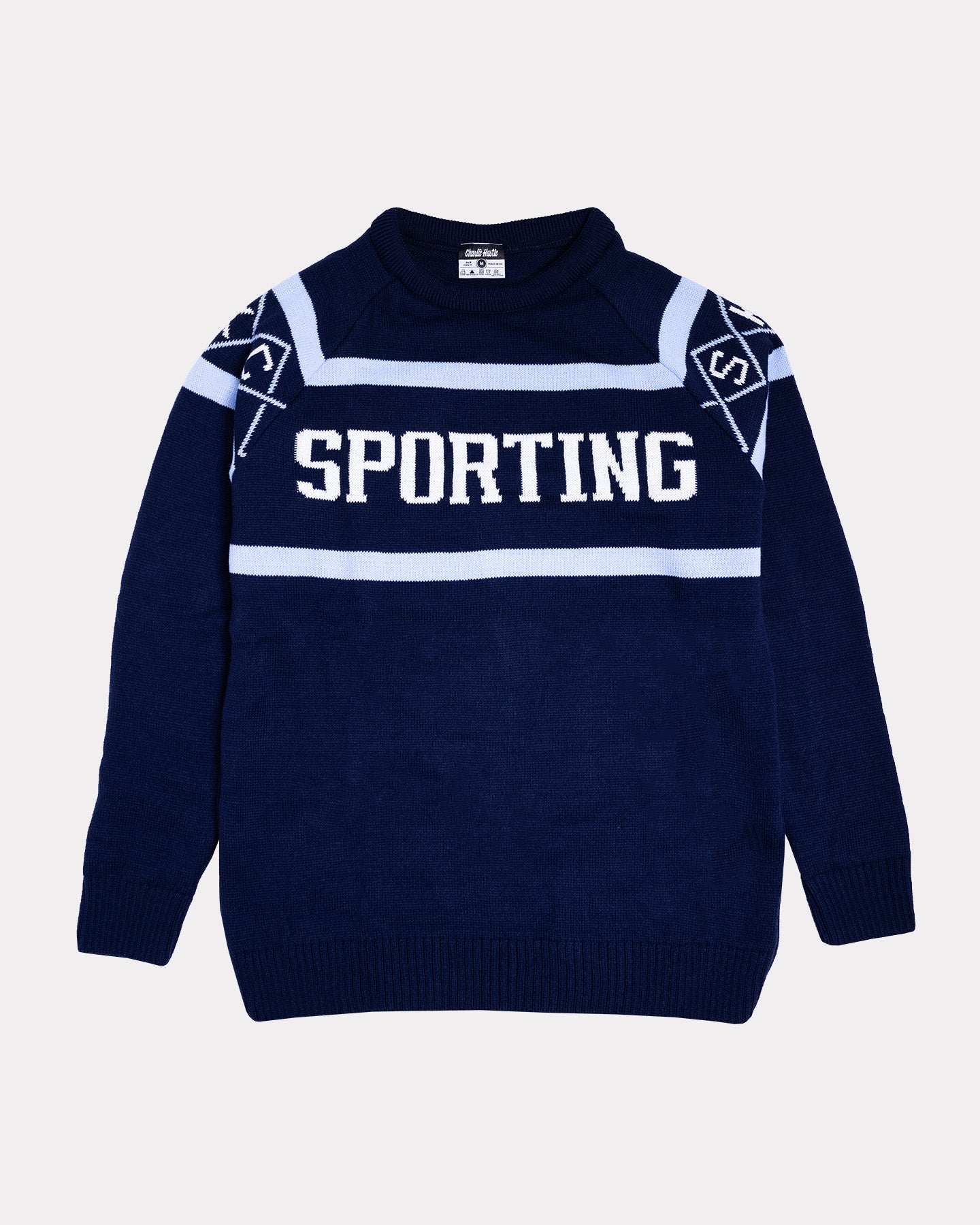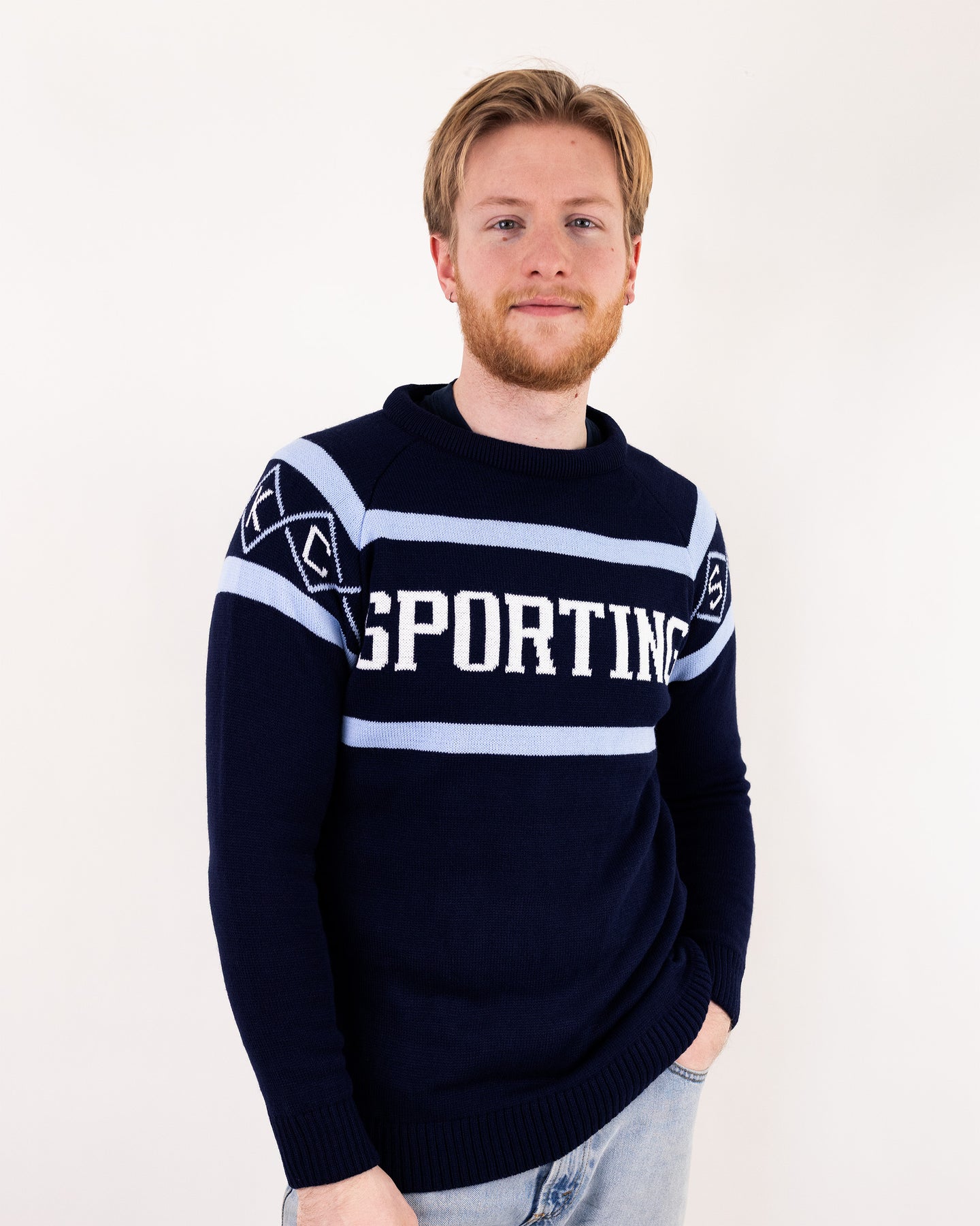Show your support for Kansas City’s home team in the Sporting KC Argyle Navy Sweater. This vintage-inspired sweater features bold navy and blue striping across the chest with “Sporting” script lettering. Designed in the team’s signature navy, this cozy sweater blends sporty style with everyday comfort — perfect for chilly match days, tailgates, or casual weekends around the city. A timeless piece for every Sporting fan who loves to represent their club with pride and style.