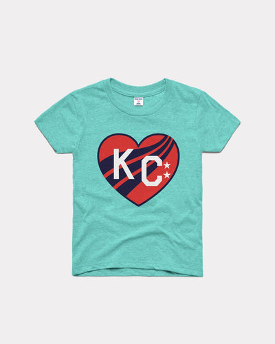 Kids Teal KC Current Crest KC Heart Vintage Youth T-Shirt