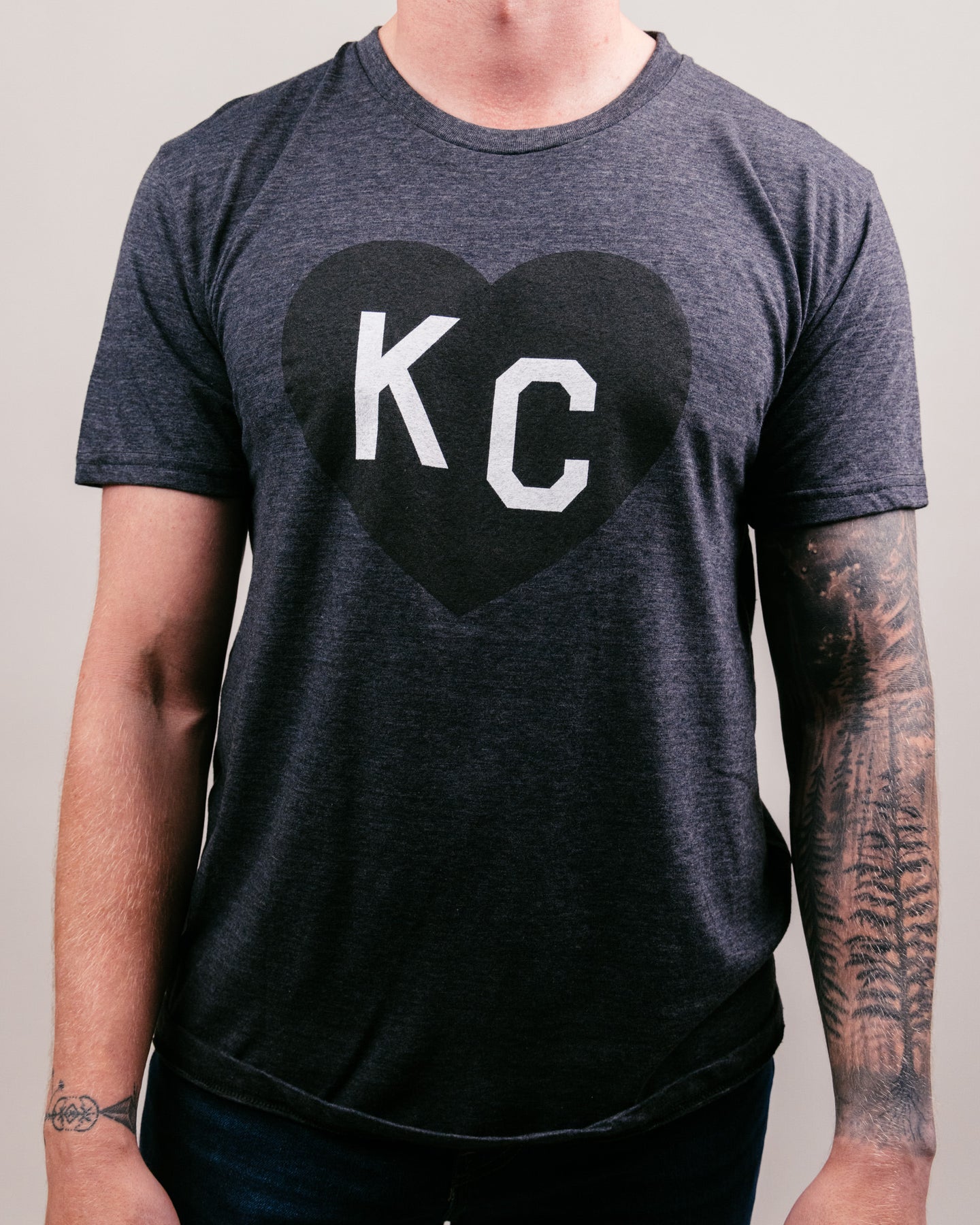 The KC Heart logo has become an icon throughout Kansas City and represents the roots of this city we call home. This Black KC Heart t-shirt is perfect for showing off your KC pride wherever you may go!