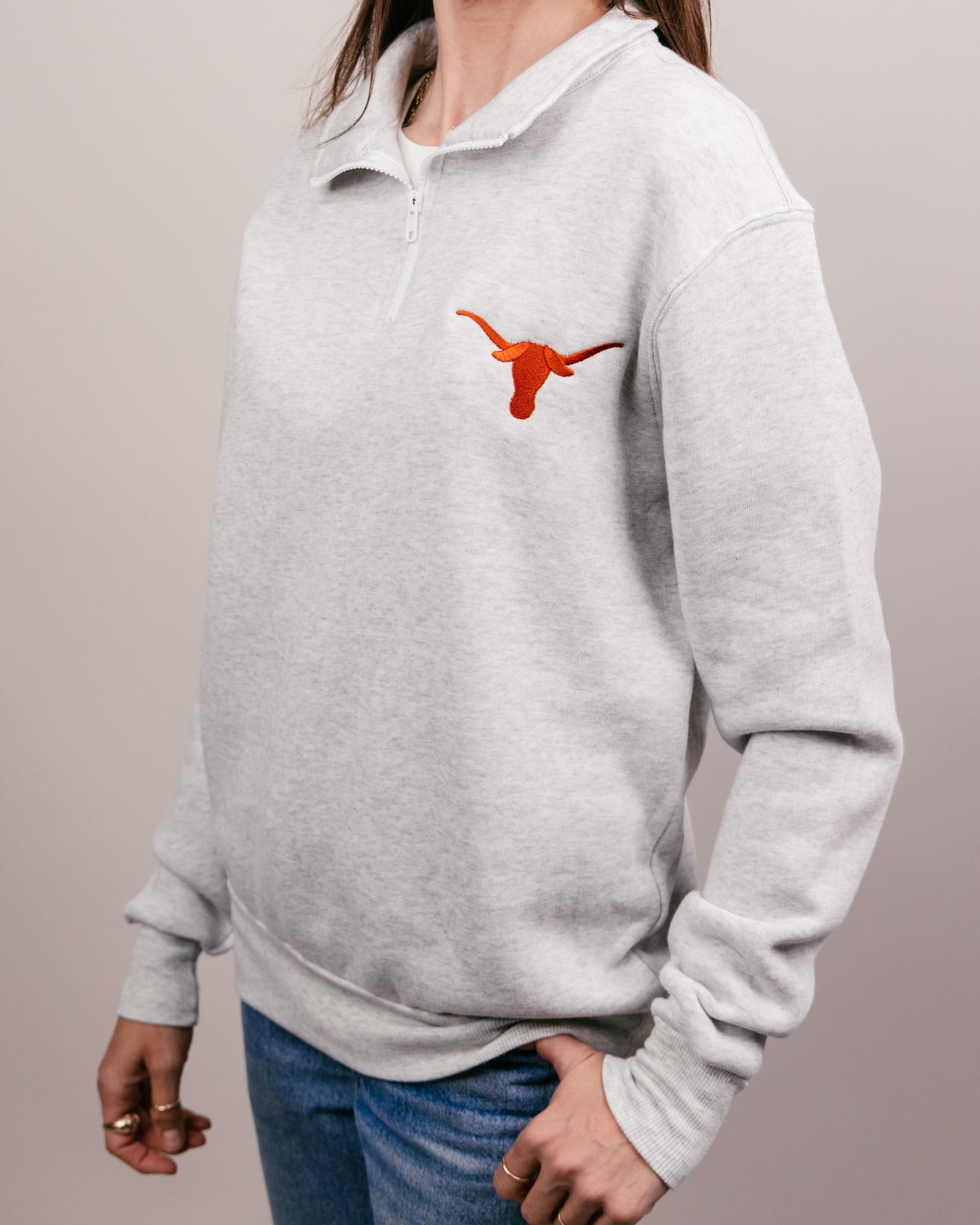 Hook 'em! Whether it's casual Friday at the office or gameday in Austin, this unisex Texas Longhorns Quarter Zip is sure to be a winner. Cheer on the Longhorns and show off your school spirit with this super soft Texas quarter zip pullover!