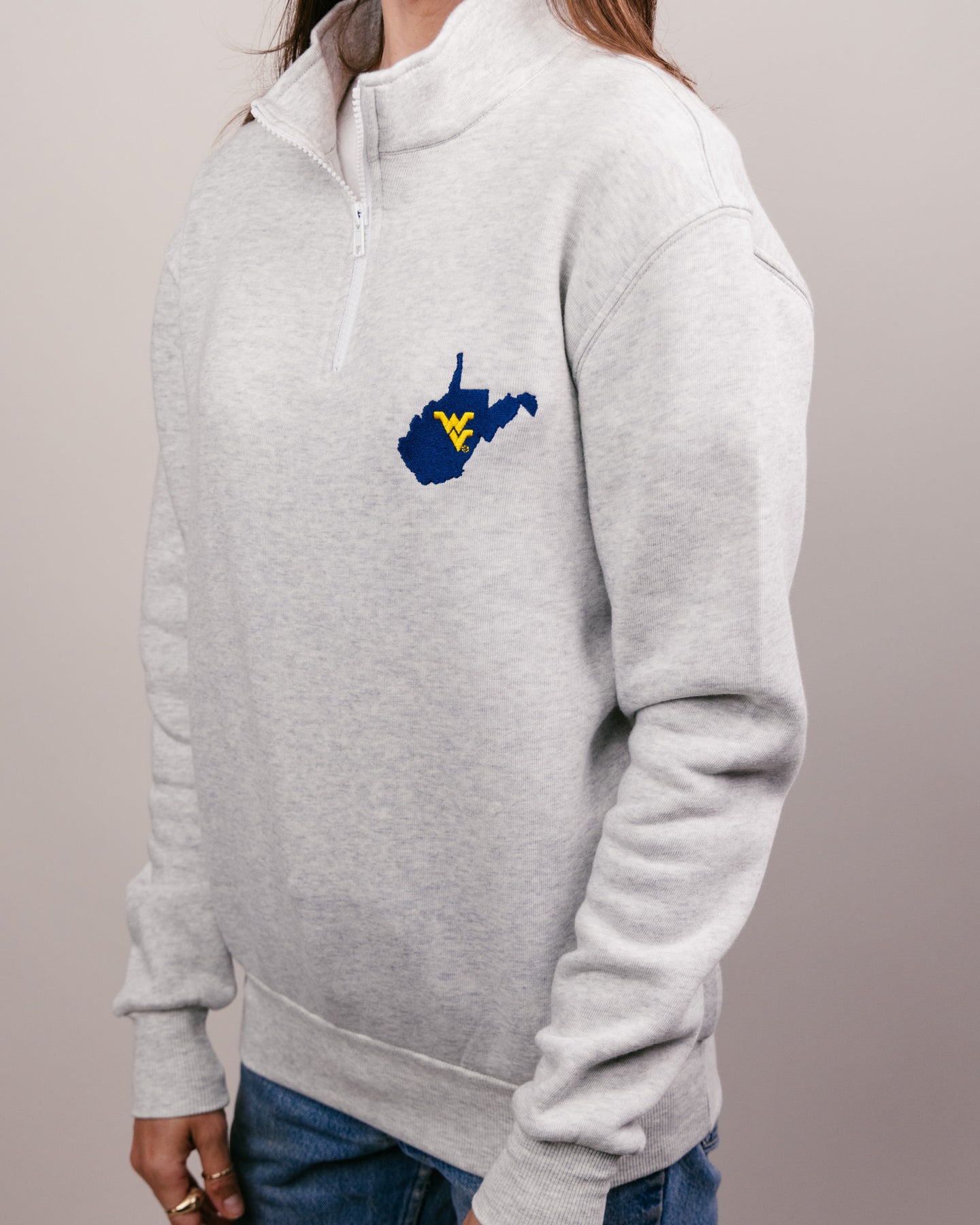 Cue Country Roads! Whether it's casual Friday at the office or gameday in Morgantown, this unisex West Virginia Mountaineers Quarter Zip is sure to be a winner. Cheer on the Mountaineers and show off your school spirit with this super soft WVU quarter zip pullover!