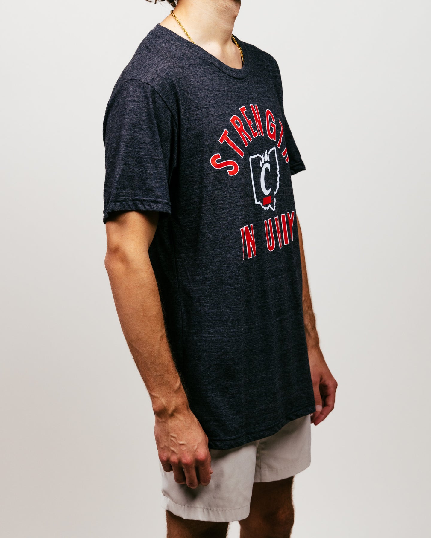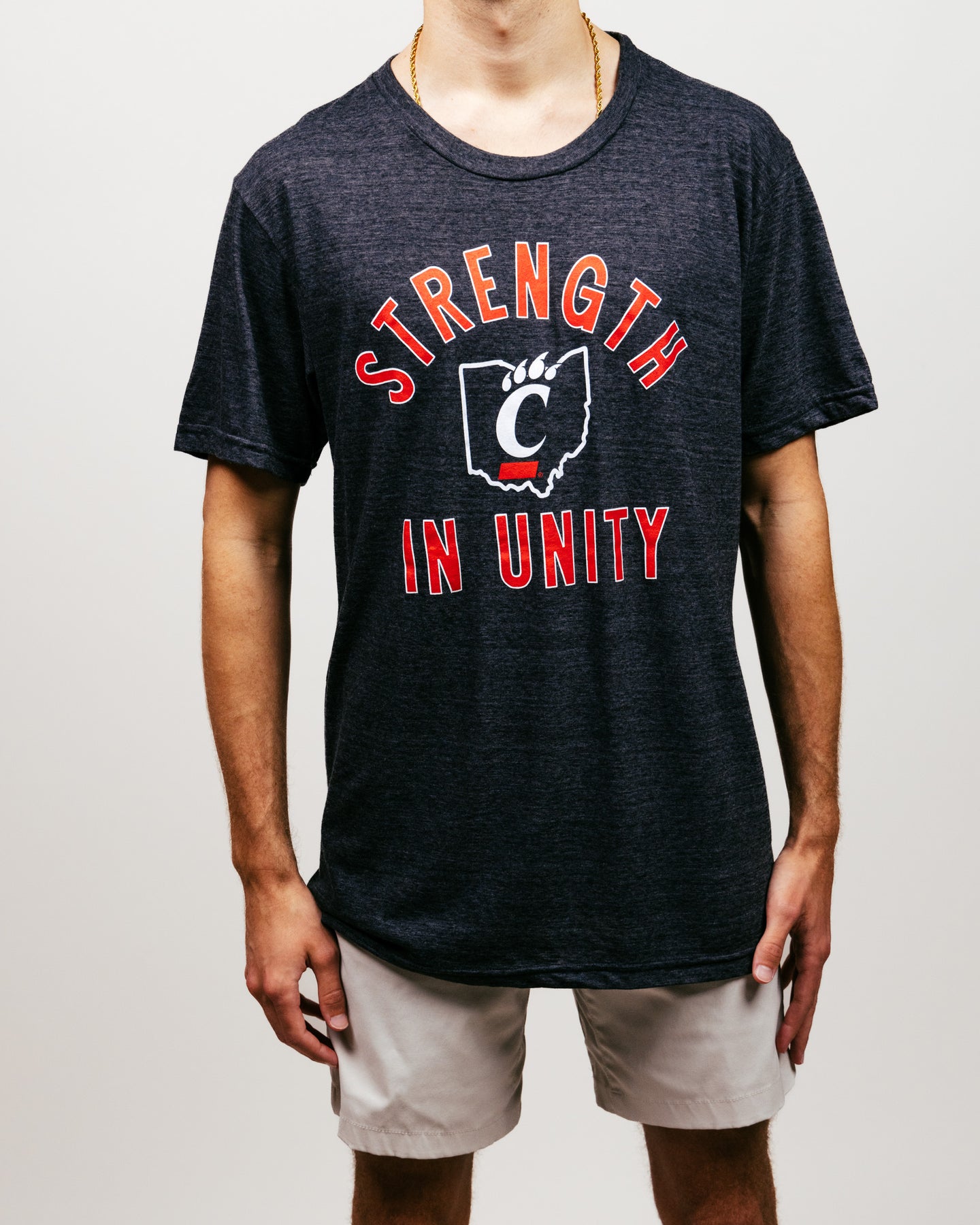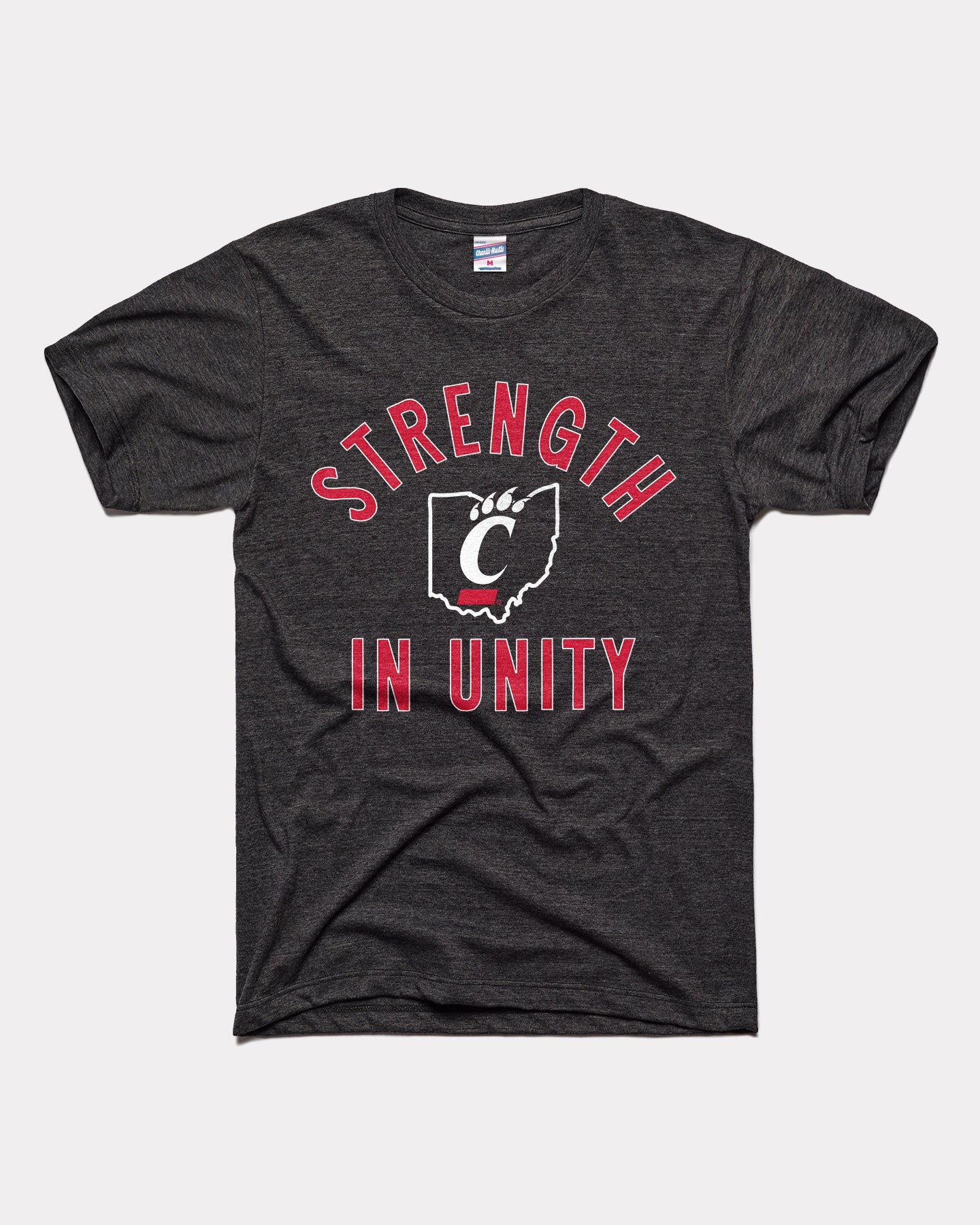 Rally together with the power of one team, one dream with our Cincinnati Bearcats Strength in Unity T-Shirt. This vintage-inspired Cincinnati tee embodies the core values of teamwork and solidarity that the Bearcats stand for and makes a statement both on and off the field. Wear it as a symbol of your Bearcat pride and commitment to unity!
