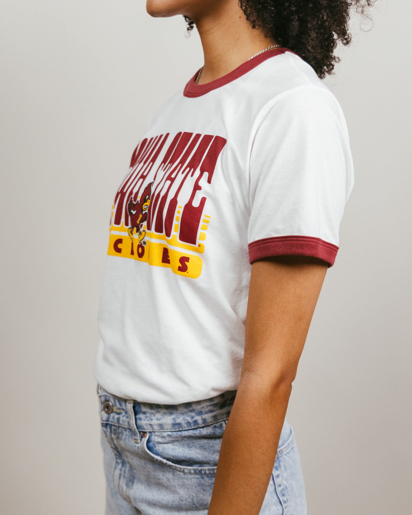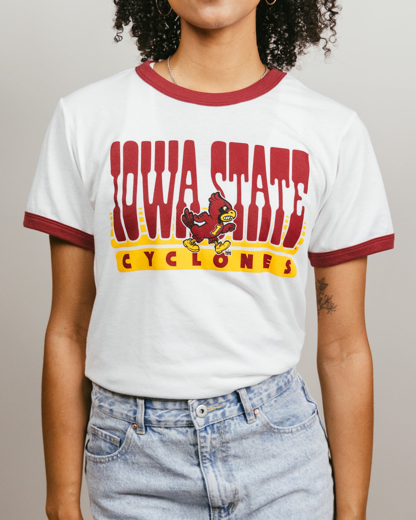 Turn back time with this Iowa State Cyclones Unisex Ringer, featuring the fan-favorite Walking Cy logo. This ISU Ringer tee is a stylish nod to the cardinal and gold's vibrant legacy and is designed for those who wear their Cyclone pride on their sleeves – literally. It's the perfect tee for an Ames gameday and is a wearable emblem of your loyalty to ISU!