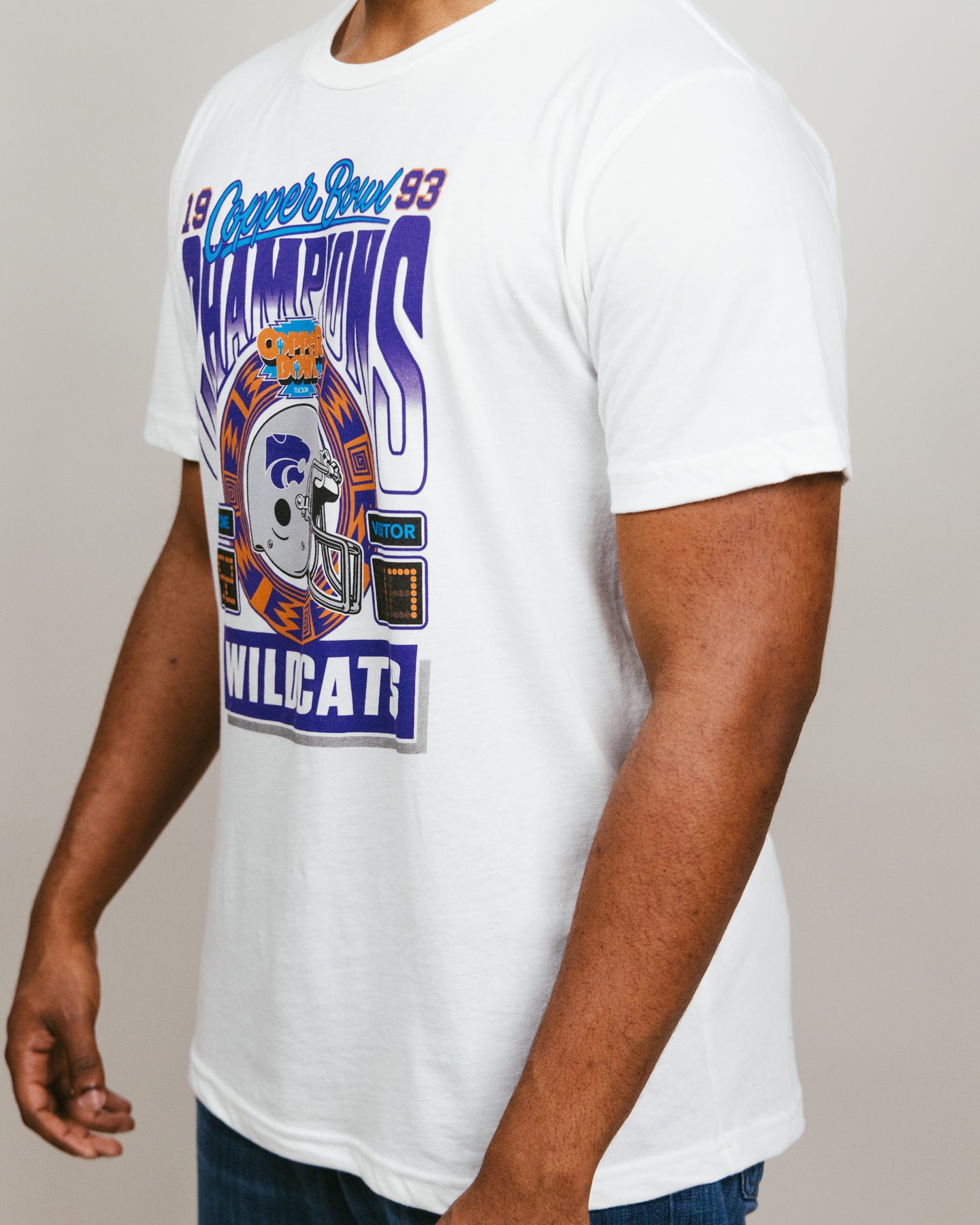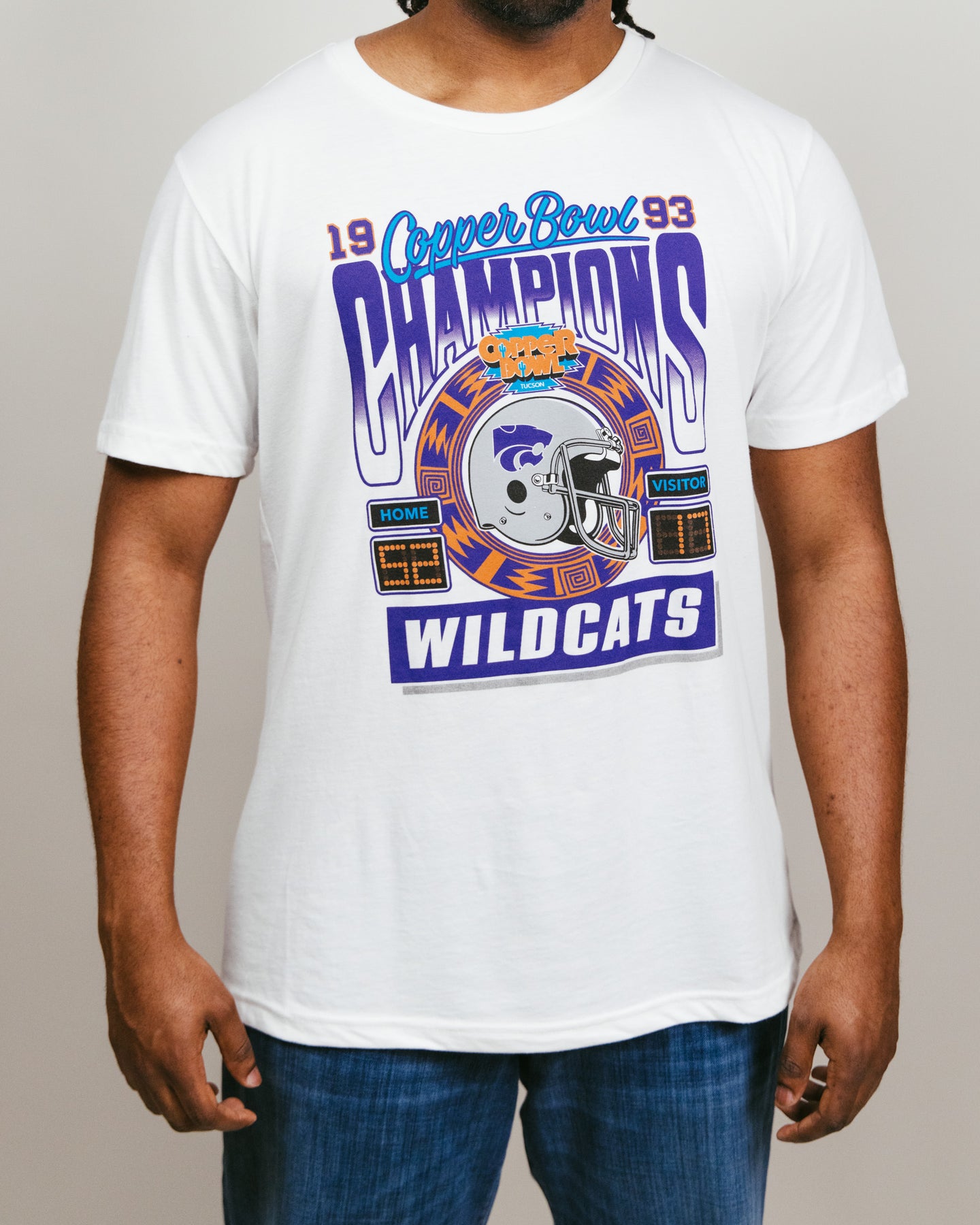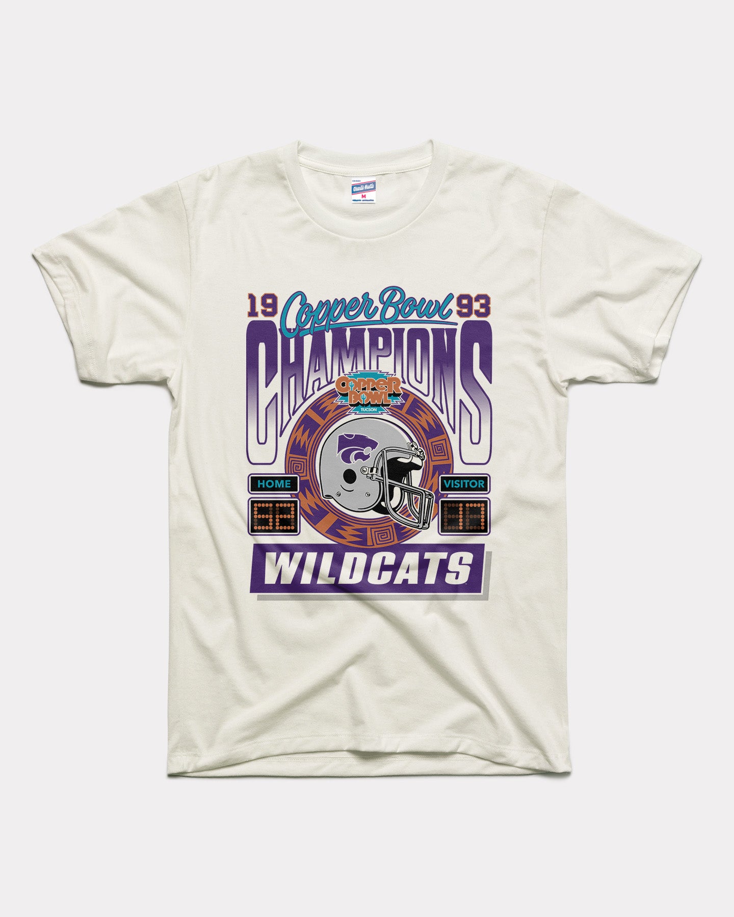 Celebrate a memorable victory with this Kansas State Wildcats Football 1993 Copper Bowl Champions T-Shirt. This vintage-inspired K-State tee captures the spirit of triumph and team pride from the Wildcats' 52-17 thrashing of the Wyoming Cowboys. This victory marked the first-ever bowl game win in school history and capped off the Cats' most successful season in 83 years. Relive the glory with this classic K-State Football tee!