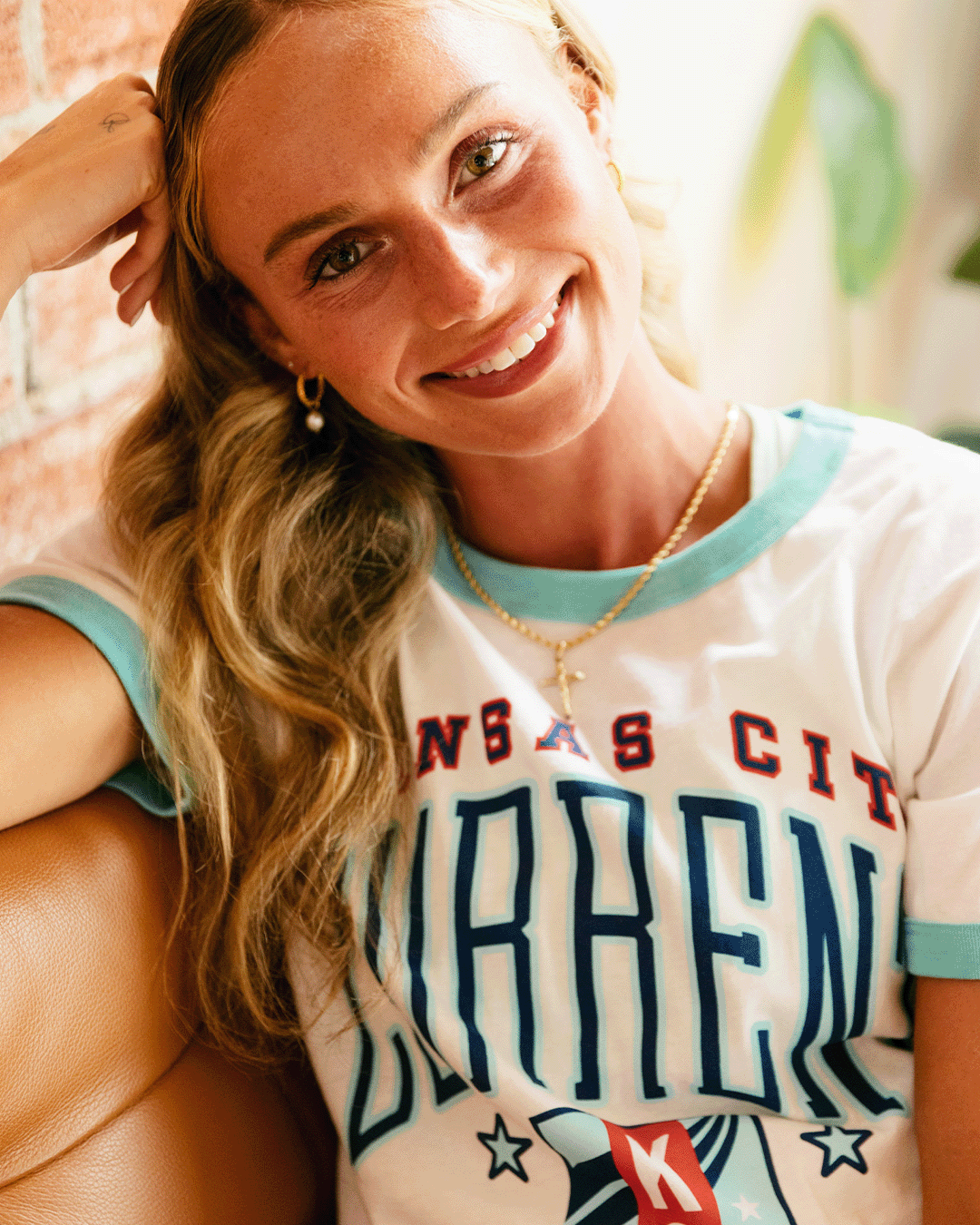 The Kansas City Current is carving their own path for women, for athletes, for our city. Join their mission to elevate women, athletes, soccer, and our city with this officially licensed KC Current Unisex Ringer T-Shirt. The perfect tee for cheering on your squad on gameday and beyond!