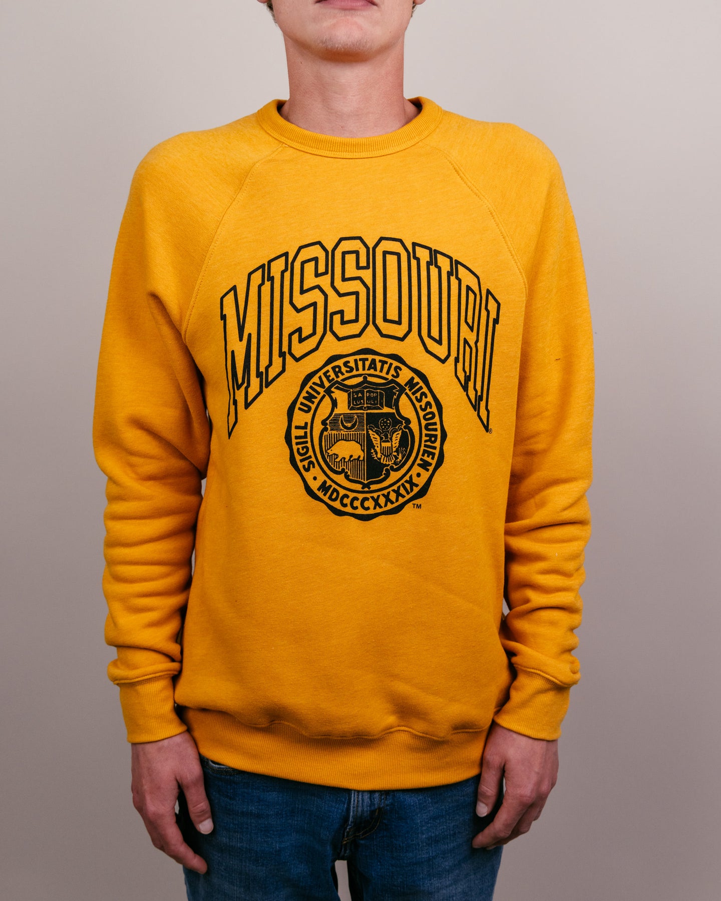 Founded in 1839, the University of Missouri was the first public university west of the Mississippi River. This vintage-inspired Missouri Crewneck, featuring the official University of Missouri Seal, pays tribute to the long-standing traditions of excellence in Columbia, MO.