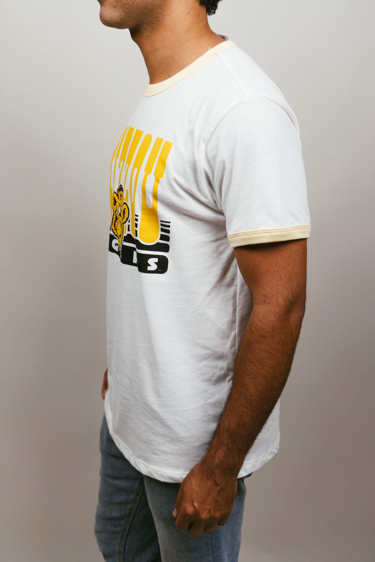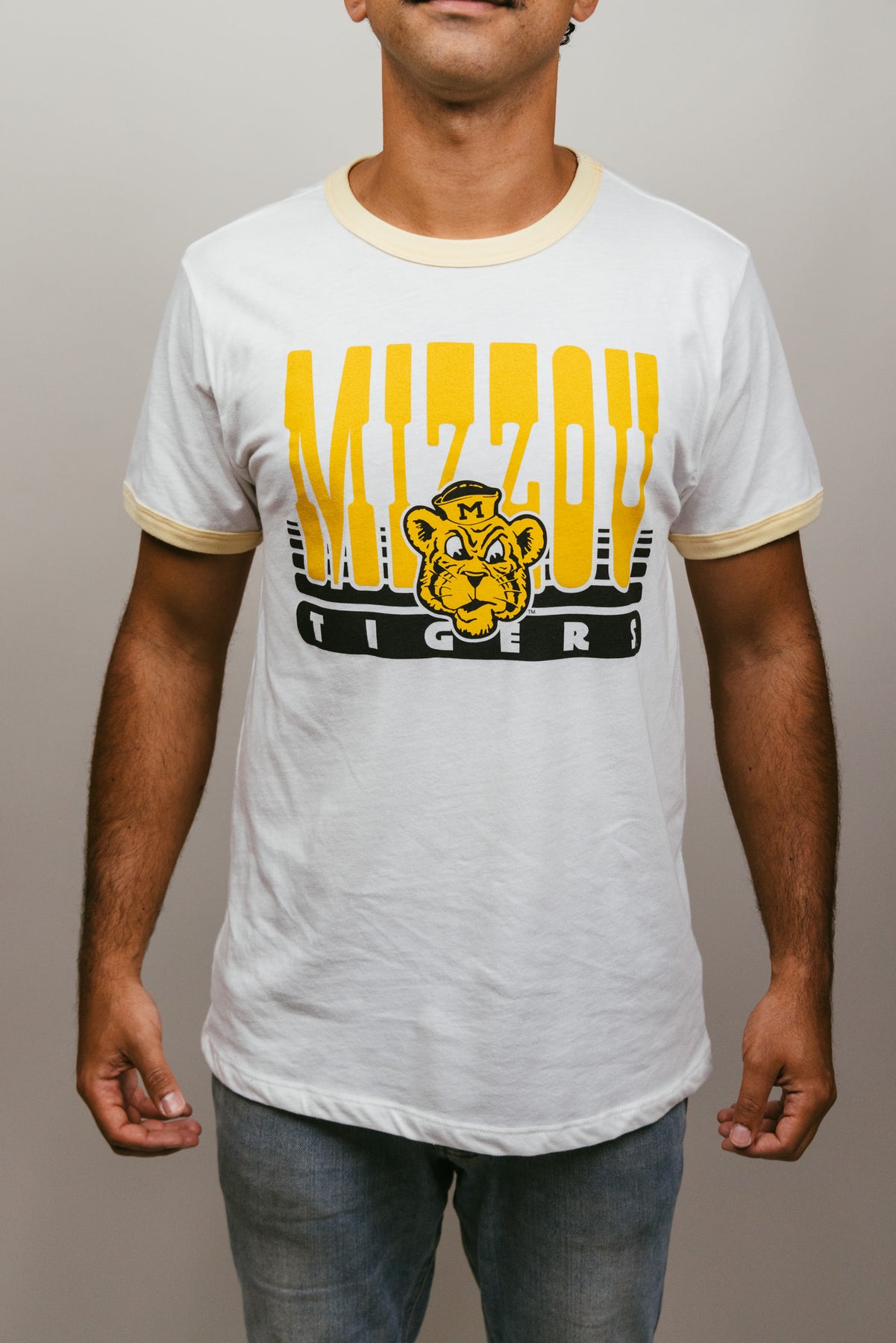 Turn back time with this Missouri Tigers Unisex Ringer, featuring the fan-favorite Sailor Tiger logo. This MU Ringer tee is a stylish nod to the Mizzou's vibrant legacy and is designed for those who wear their school spirit on their sleeves – literally. It's the perfect tee for a CoMo gameday and is a wearable emblem of your loyalty to Mizzou! Officially licensed College Vault product.