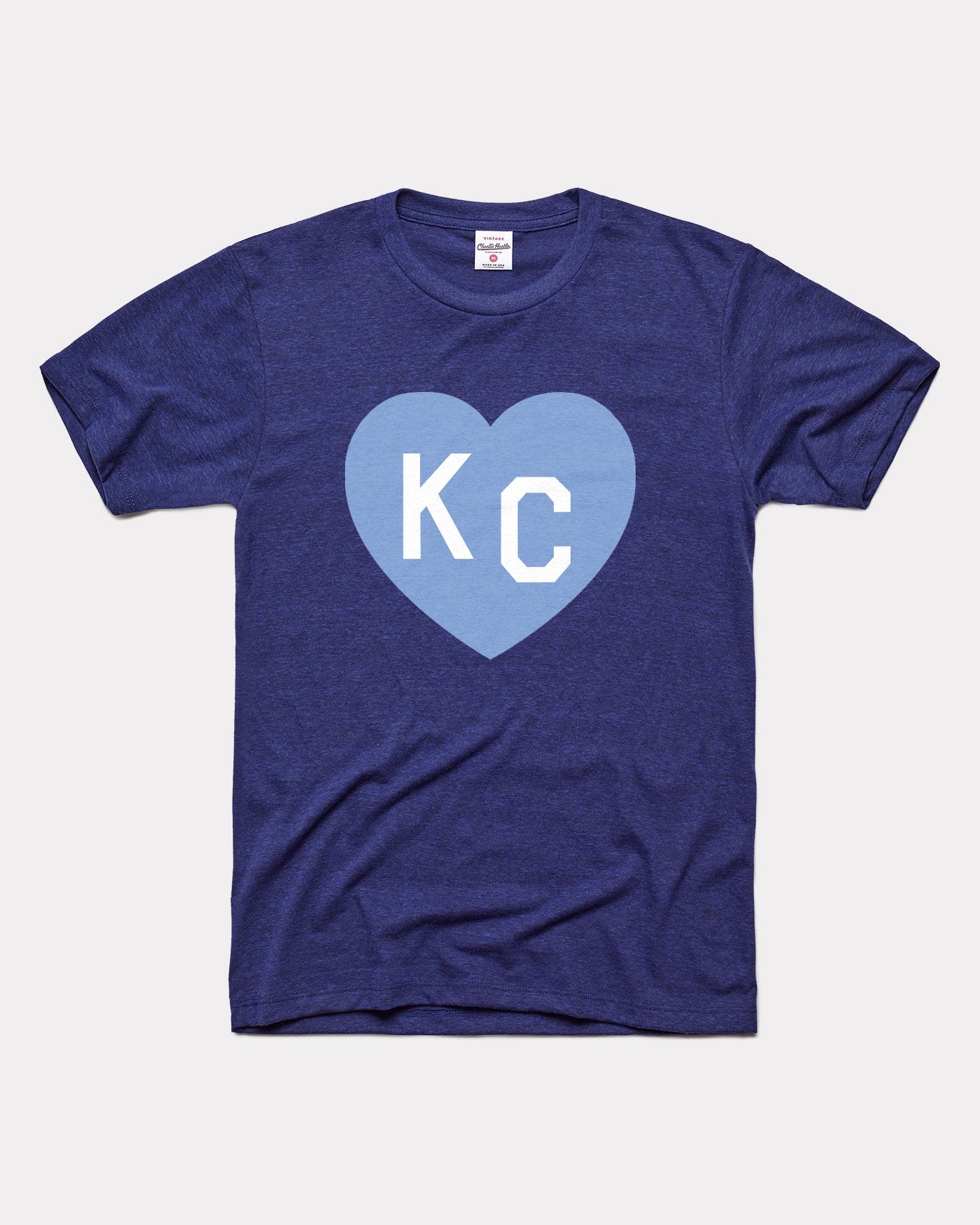 Cheer on your hometown soccer squad all season long in this classic KC Heart t-shirt! This vintage-inspired tee features our iconic KC Heart logo in a Light Blue and Navy colorway. Show off your KC soccer pride today!