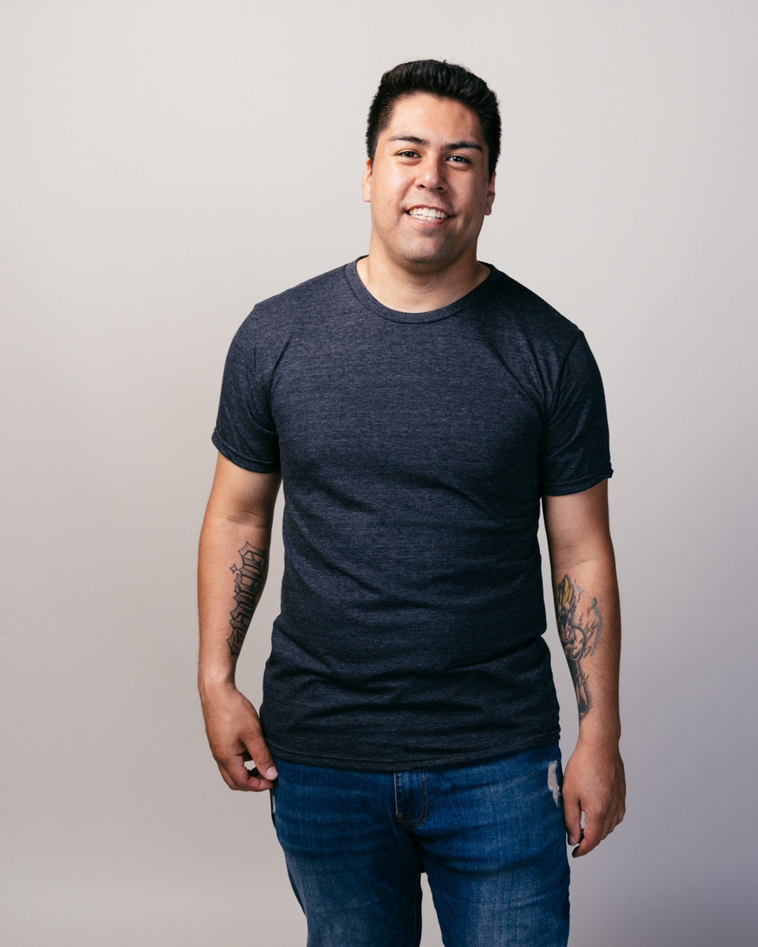 Made of 50% Polyester, 38% Cotton, 12% Rayon to create the perfect blend, super soft on the torso.